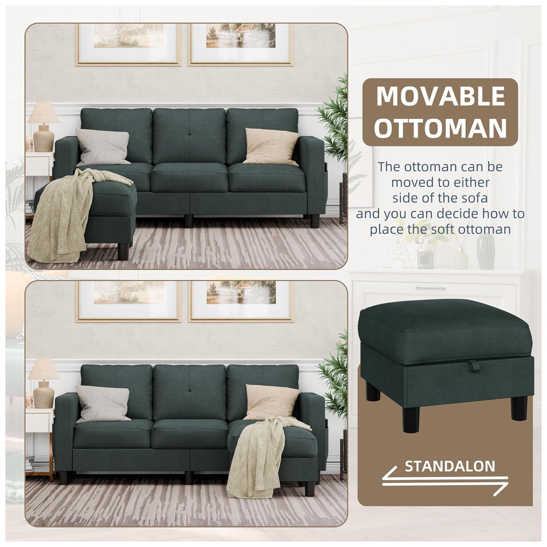 • Convertible design with movable ottoman lets you easily switch between left