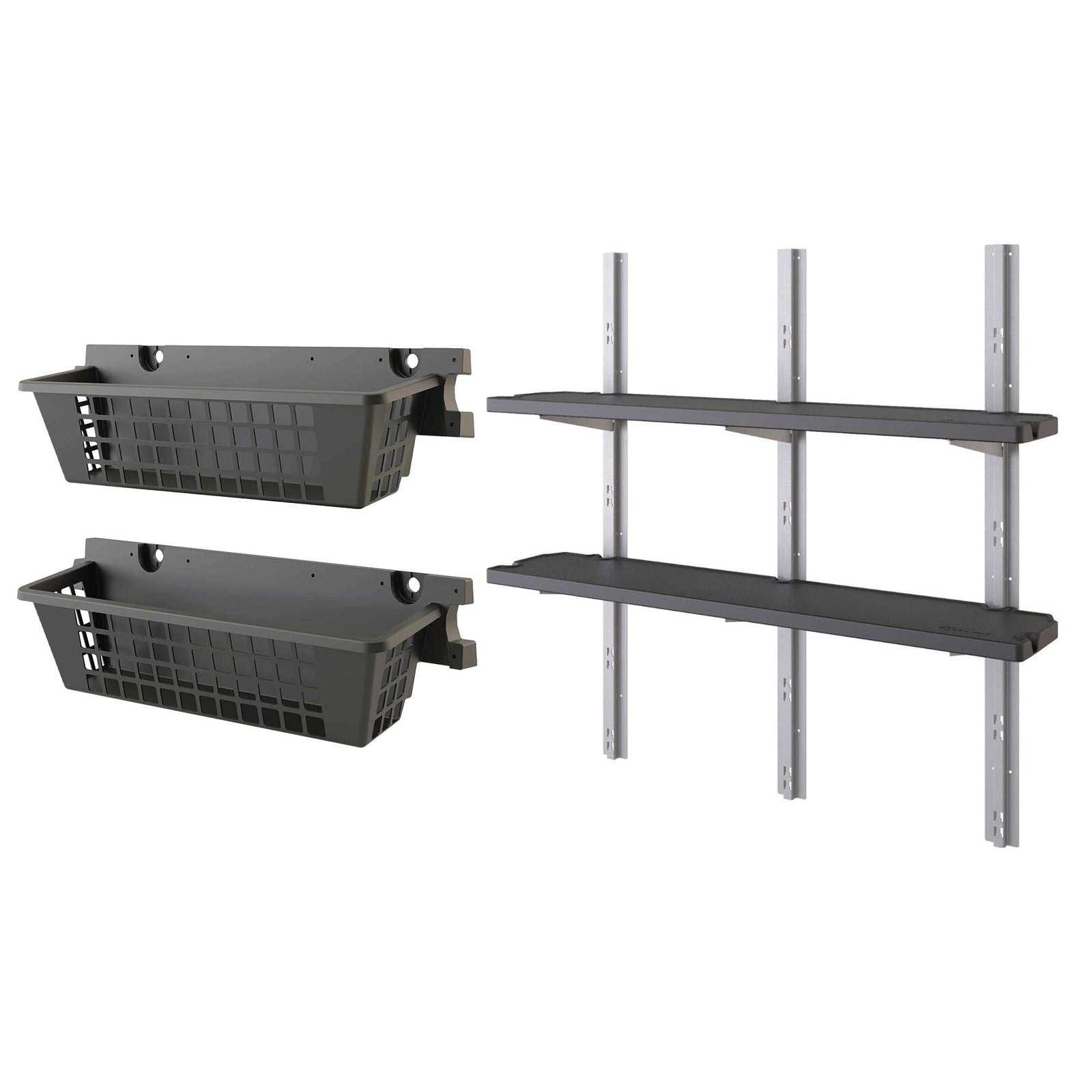 Suncast 2 Pack 25” x 7.25” Basket Accessory & Vertical Shed 2 Shelf Kit, Black