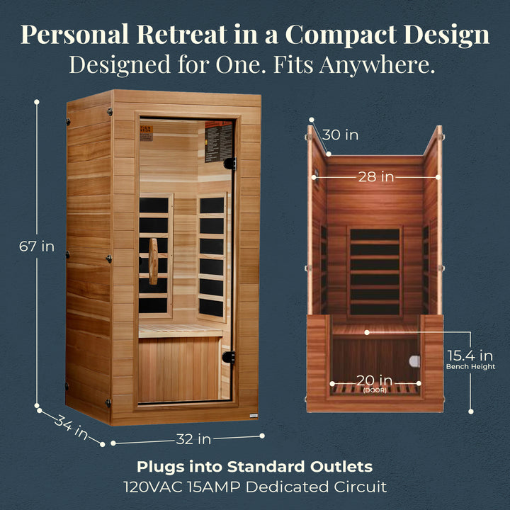 Dynamic Saunas Elite 1 Person Compact Ultra Low EMF FAR Infrared Home Sauna