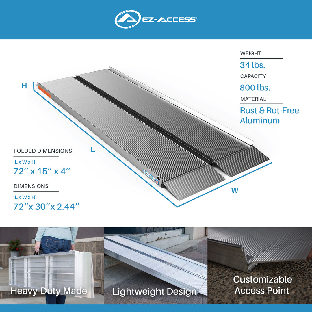 - Elevate your mobility using this easily portable ramp features a single-fold design, offering a speedy and user-friendly inclusion to your mobility aids, perfectly suited for some minivans and SUVs