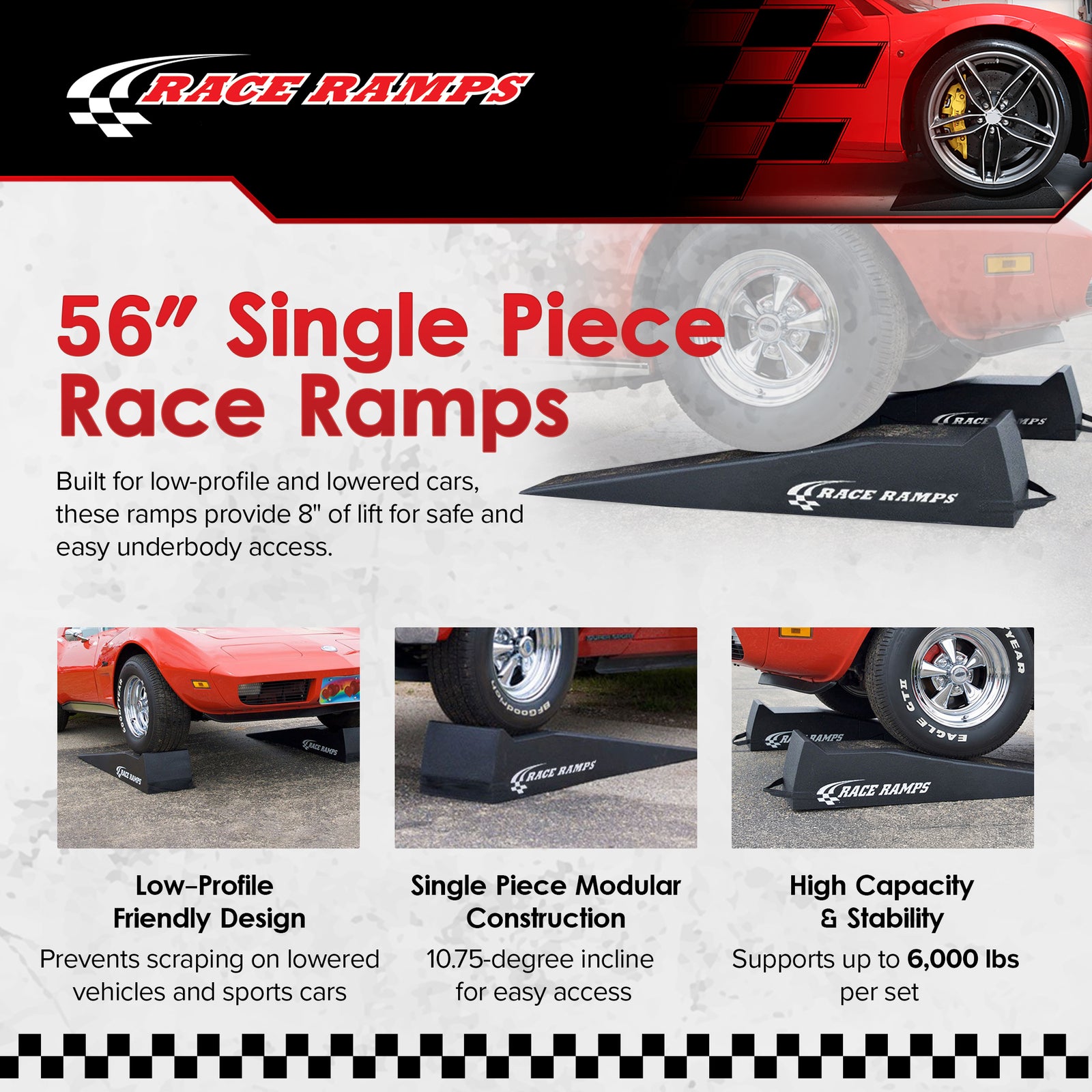 - Perfect for low-profile cars, with a 10.75-degree incline for easy access