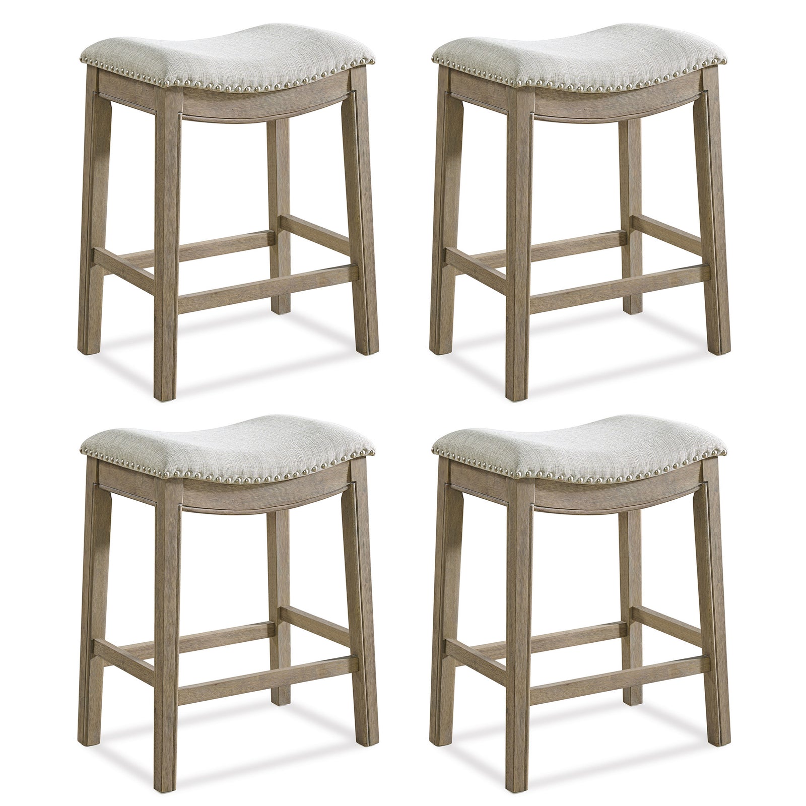 ROME + OAK Parker Backless Kitchen Counter Stool, Oak, Grey Upholstery, Set of 4