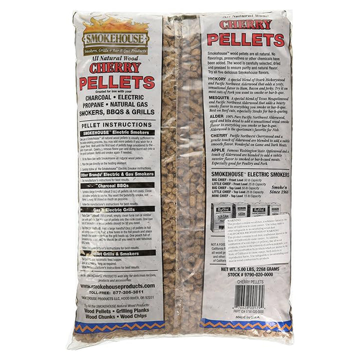 Unlock bold, rich smoke flavor with the original Smokehouse Cherry Wood Pellets—crafted to elevate your grilling and smoking experience. These premium wood chips are made from cherry hardwoods, delivering a hearty, country-style smoke with just the right touch of sweetness. Whether you're cooking beef, pork, poultry, seafood, vegetables, wild game, or cheese, this blend offers a balanced smoke that enhances any dish.