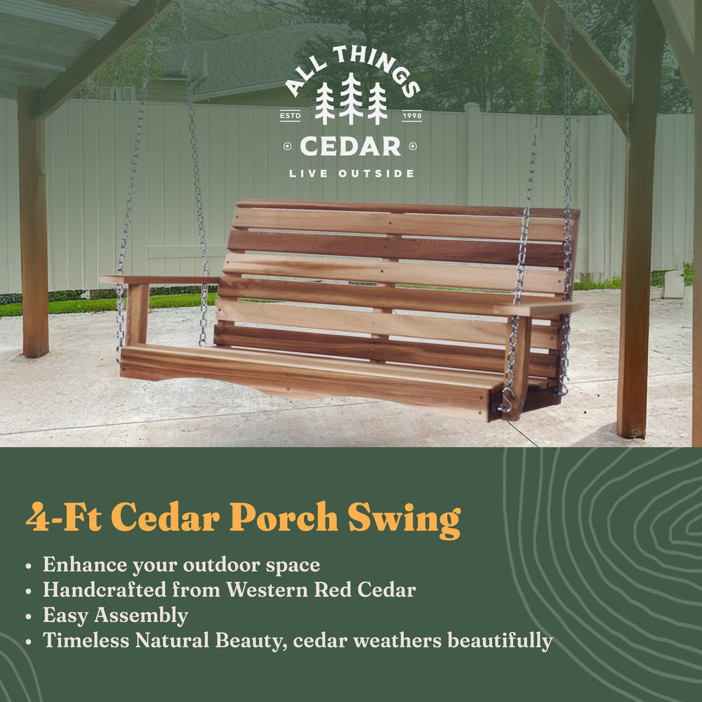 All Things Cedar Natural Handcrafted Red Cedar 4-Foot Porch Swing (Open Box)
