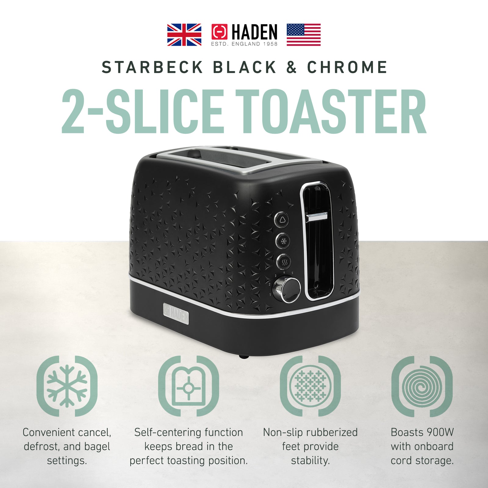 Haden Starbeck 2 Slice Toaster Wide Slot with Crumb Tray, Black/Chrome(Open Box)