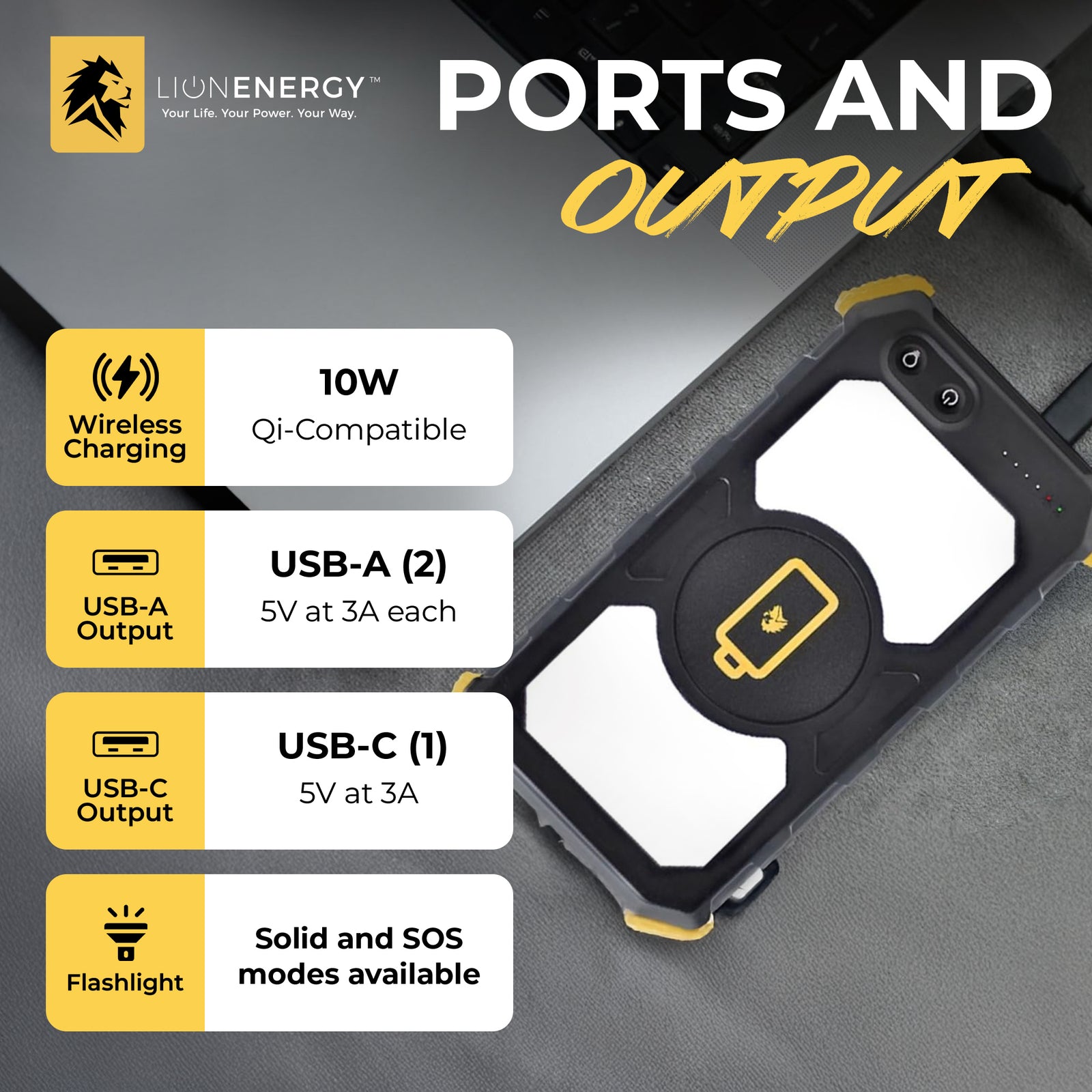Lion Energy Prowler Power Bank, Portable Wireless Phone Charger with Flashlight