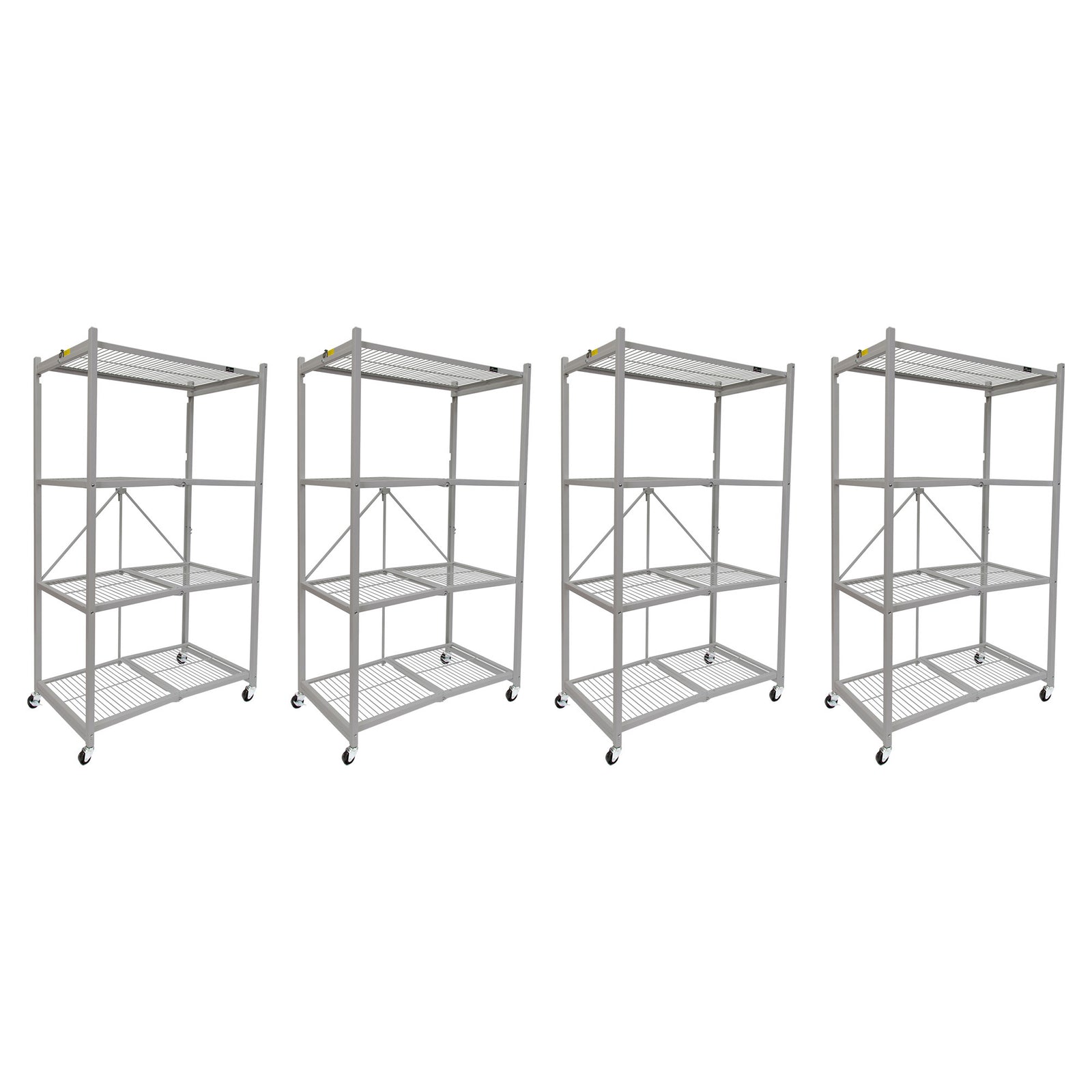 Origami 4-Pack R5-06W 4-Wheel 4-Shelf Folding Steel Wire Shelving Storage, Gray