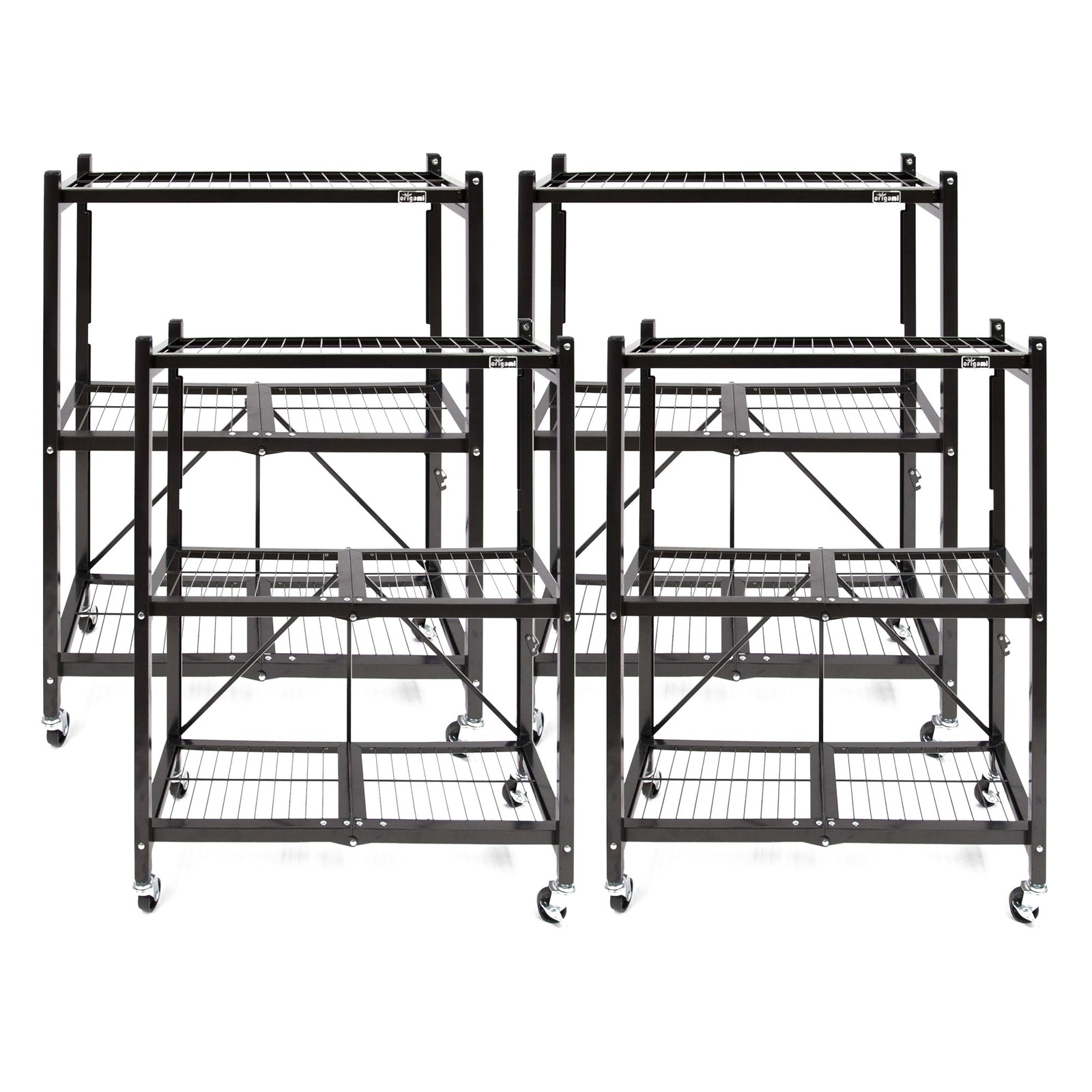 Origami 4-Pack R5-06W 4-Wheel 4-Shelf Folding Steel Wire Shelving Storage, Black