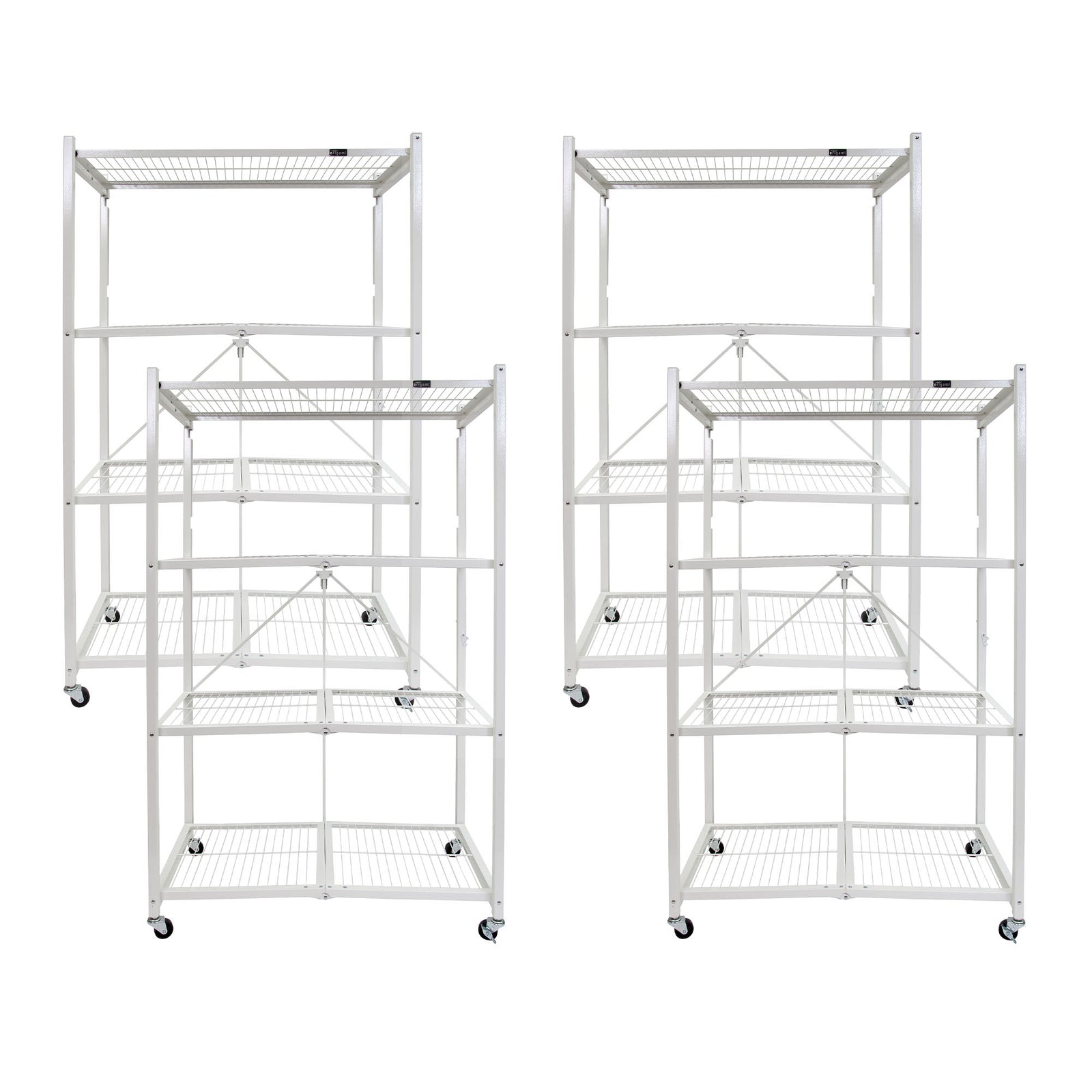 Origami 4-Pack R5-06W 4-Wheel 4-Shelf Folding Steel Wire Shelving Storage, White