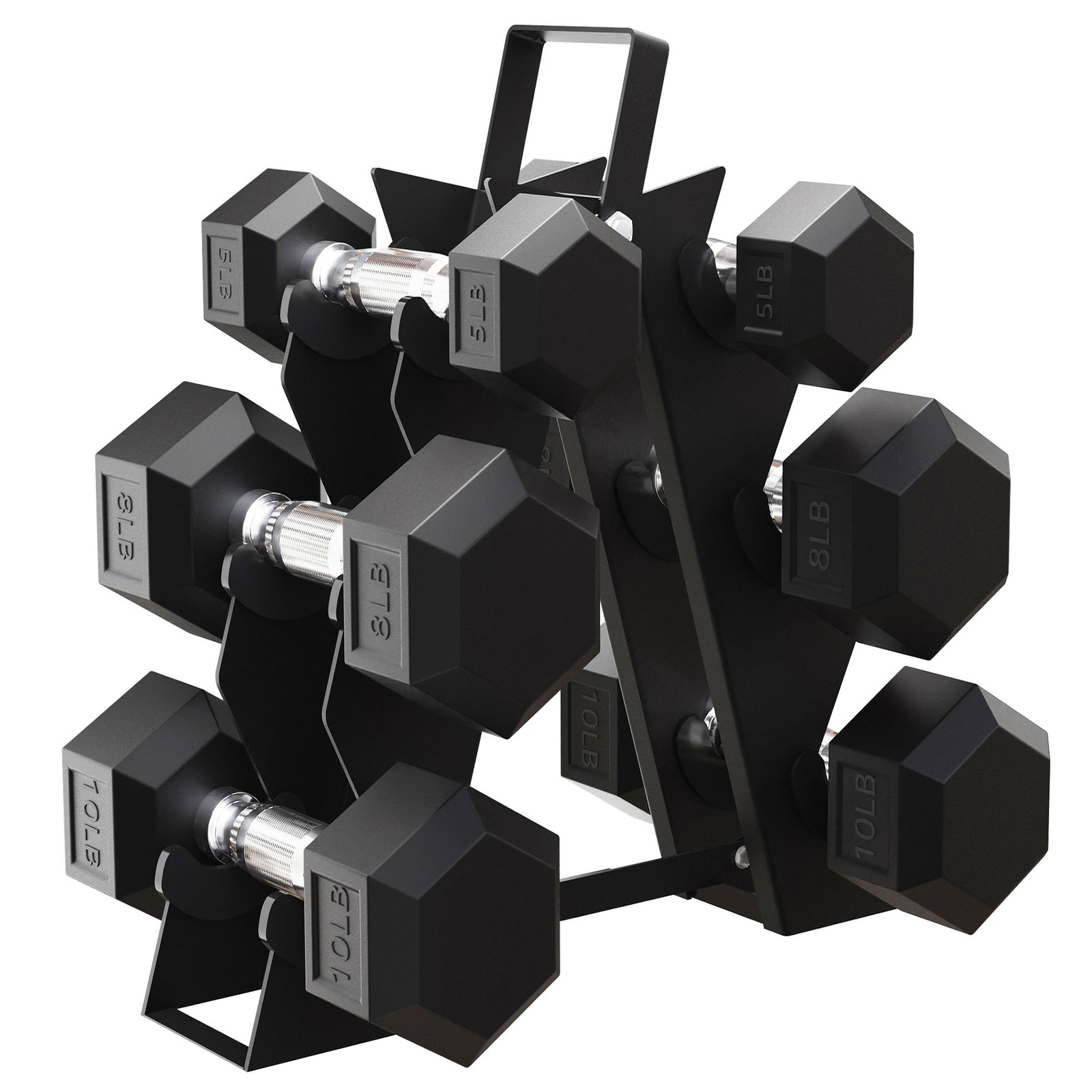 BalanceFrom Rubber Encased Hex 5, 8, & 10lb Dumbbell Set w/Metal Rack(Open Box)