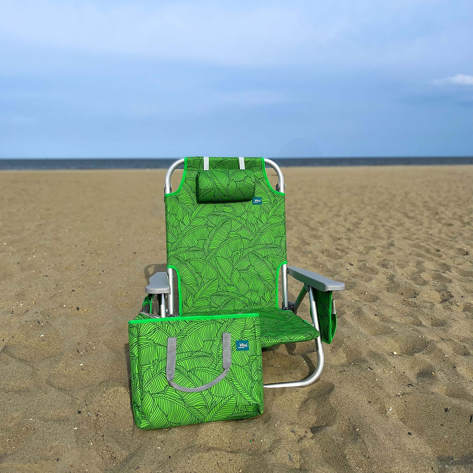Bliss Hammocks Folding Beach Chair Recliner w/ Detachable Cooler, Banana Leaves