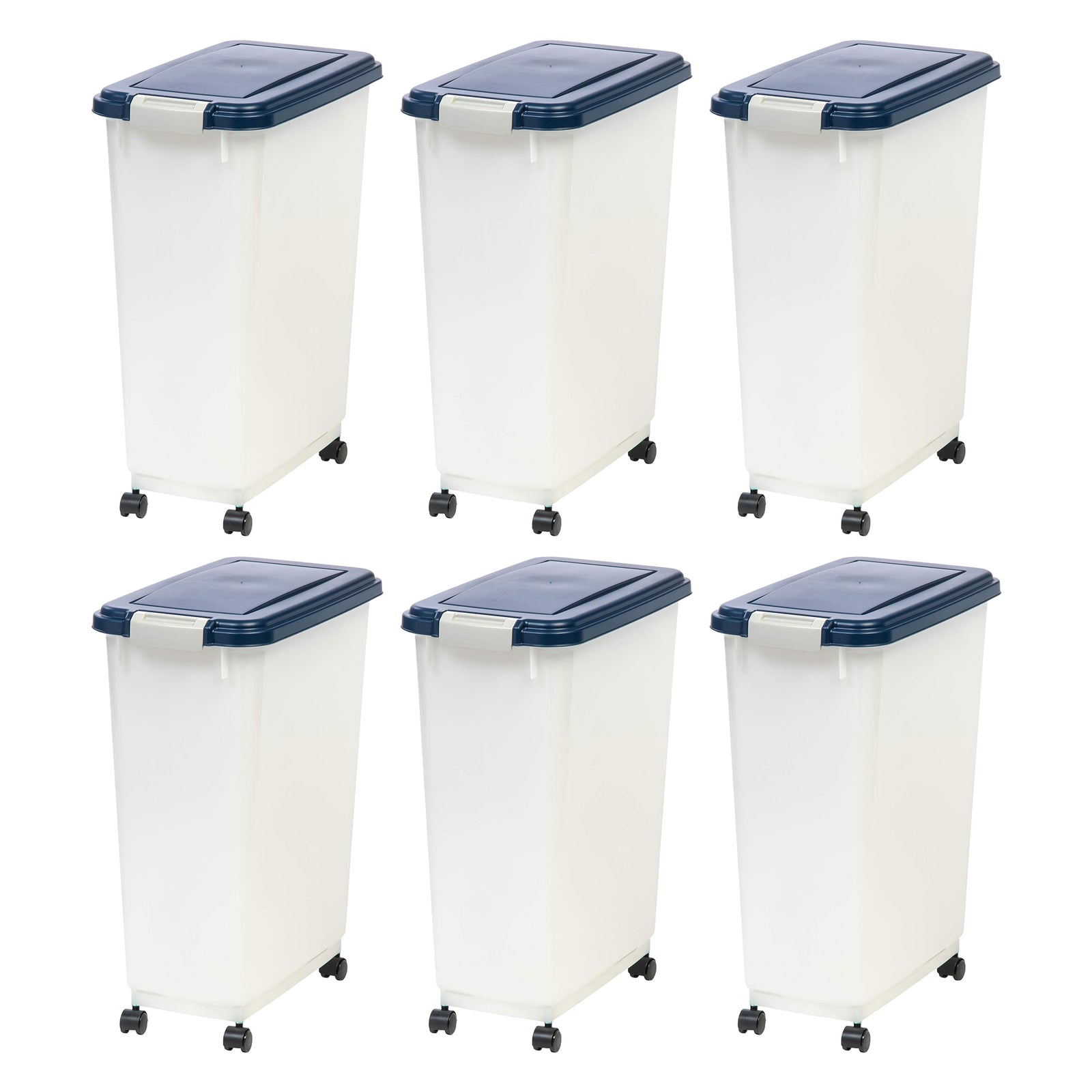 IRIS USA Pet Food Storage Container, Airtight Rolling Bin, 38 lbs, Navy, 6 Pack