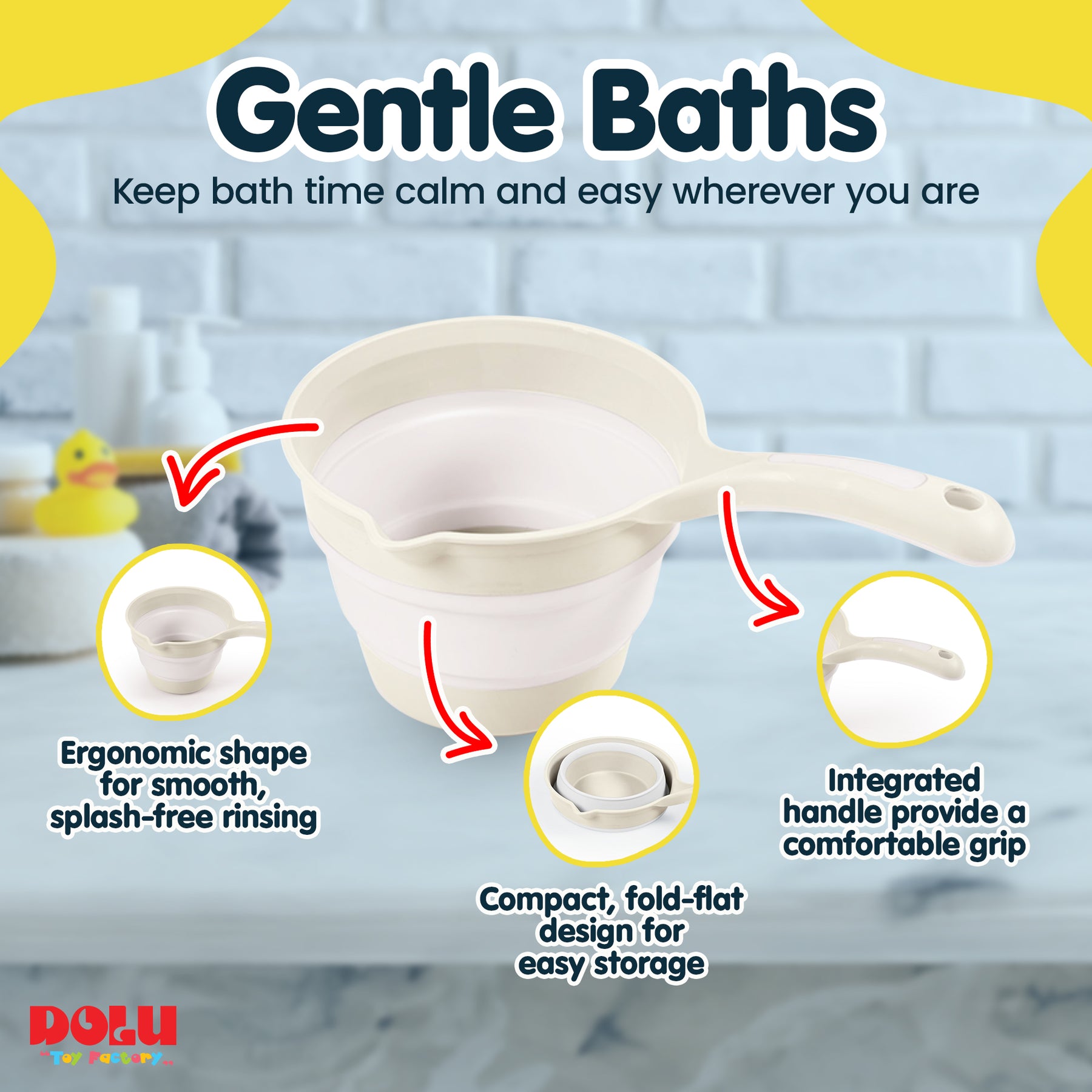 DOLU Foldable Bath Ladle for Compact Toddler Wash Tub, Ages 6+ Months, Beige