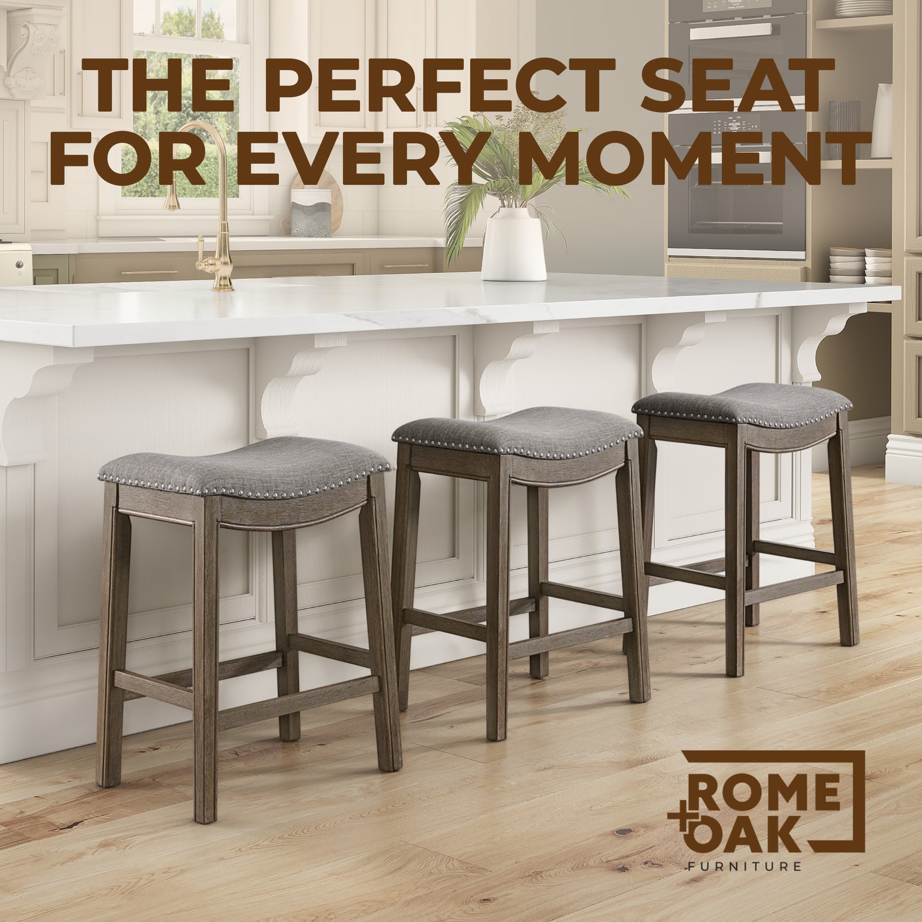 When accessorizing your kitchen, incorporating seating you love is imperative— after all, they say the kitchen is the heart of the home. Boasting traditional good looks, solid wood construction, a contour saddle cushion, and elegant details like hand-applied nailhead trim, our Parker Stool serves as the foundation required to create your dream dining space. Its simplistic design allows our backless wood barstools to mesh well with any kitchen aesthetic. With a finish highlighting this barstool’s organic wood grain paired with luxe fabric upholstery in a neutral sand color, this barstool’s adaptable and timeless design allows you to slide it beneath your kitchen island simply, and voilà, your kitchen styling is finito.