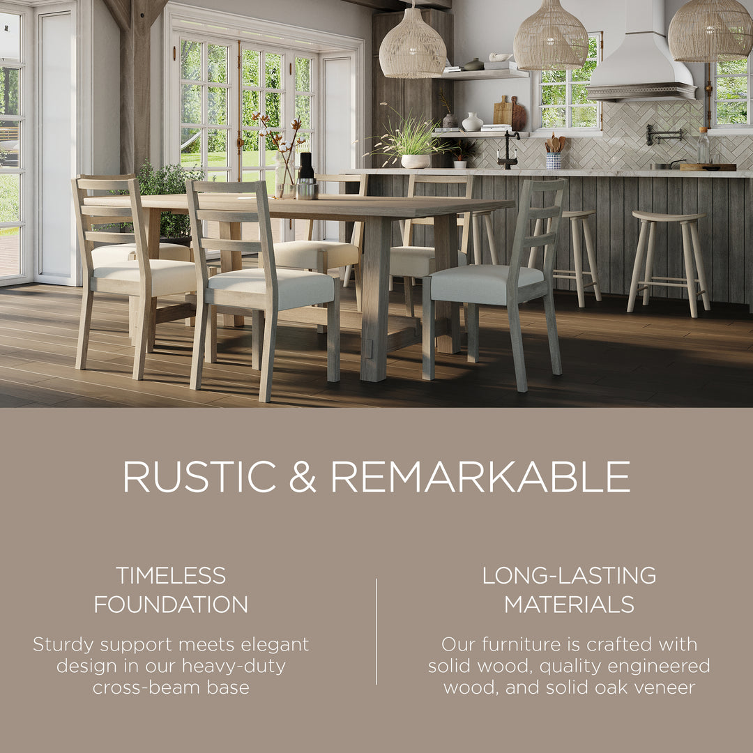 Rustic and remarkable, our Yves Rectangular Wood Dining Table is the quintessential choice for gatherings of all sizes. You’ll enjoy simple pleasures as this dining table becomes your new favorite place for respite while you relish your morning tea or celebrate milestones. You’ll love the hand-crafted details like its cross-beam base, weathered wooden finish, and a silhouette that easily pairs with any style of seating. This dining table is handcrafted and given a neutral-toned finish to mesh with your home’s aesthetic seamlessly. Flawless as a kitchen table for casual dining, or dress it up in your dining room—either way, this rectangular table is a welcomed addition to your dining endeavors. At Maven Lane, our home furniture is meticulously handcrafted with methods to stand the test of time including hand finishes displaying an impeccable attention to detail, and mortise-and-tenon joinery techniques which promote strength and longevity. Furthermore, by utilizing premium materials and kiln-dried hardwood in our solid wood furniture, we’ve solidified the superiority of craftsmanship you’ve come to expect from Maven Lane. Be sure to view the other pieces in our furniture collection. We've carefully curated an entire medley of heirloom-quality pieces that can be mixed and matched to create the aesthetic your home has been seeking. Given the handmade nature of our products, minimal variations may occur in color, tone, and wood finish.