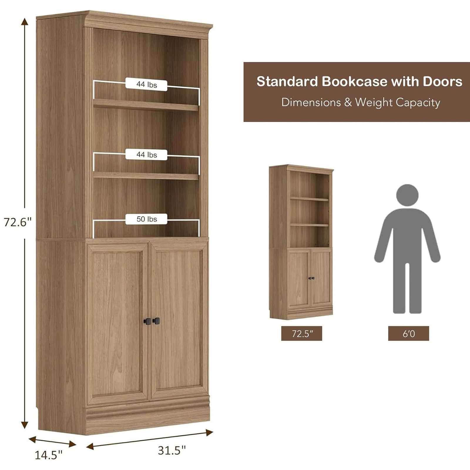 VAUXHILL & CO. Halston Standard Bookcase, Doors, Adjustable Shelving Unit, Oak