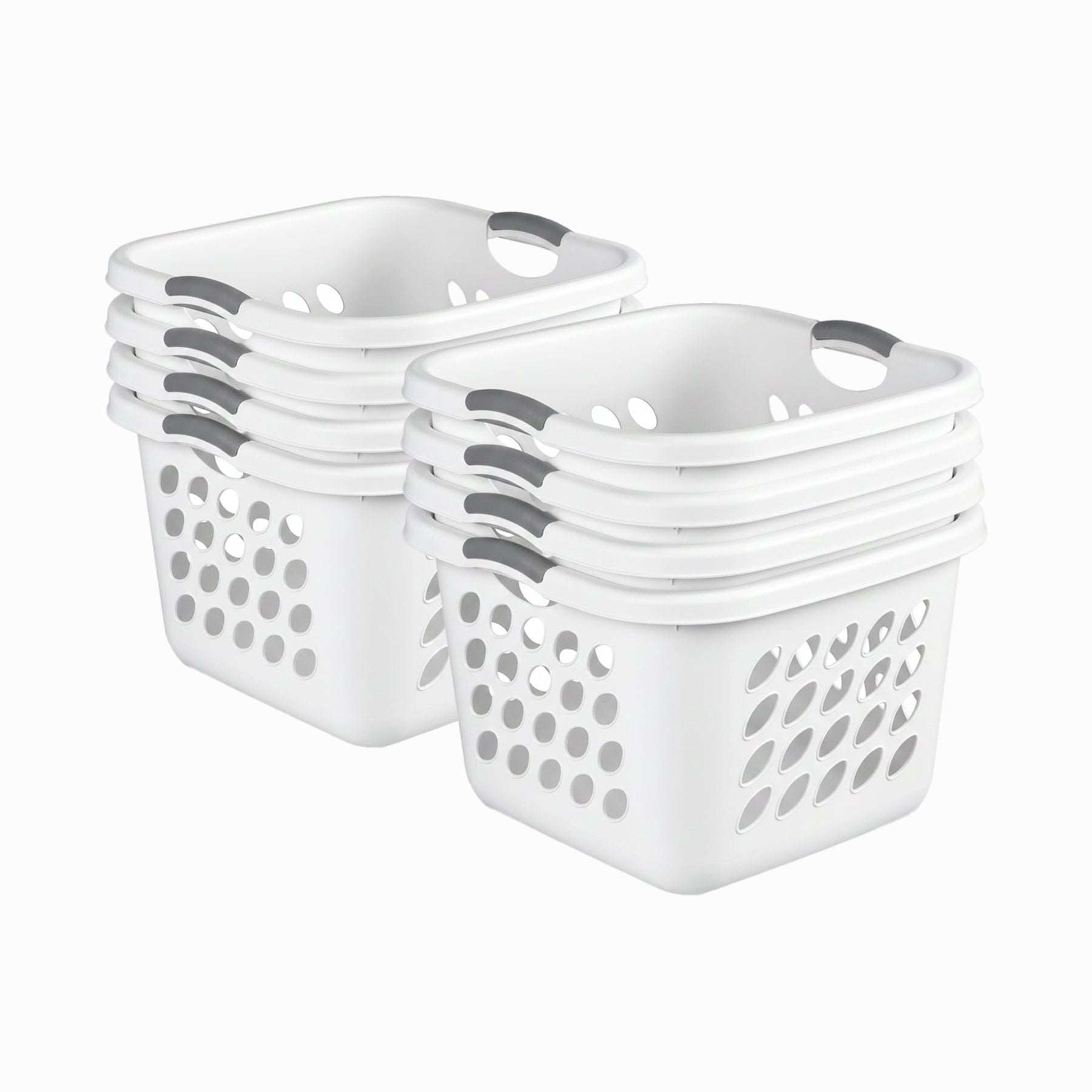 Sterilite Square Laundry Basket, 1.5 BushelHamper with Handles, White, 8 Pack