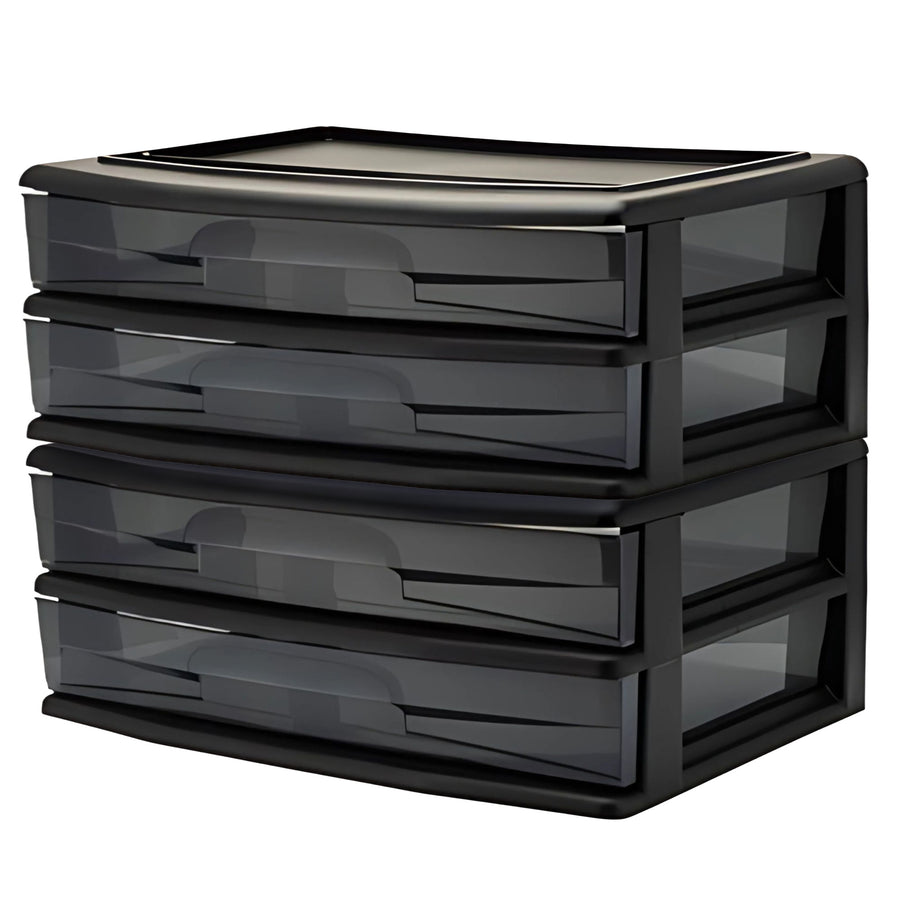 • Smoke-tint drawer design with easy-access handles makes it easy to hide your storage contents for a clean look