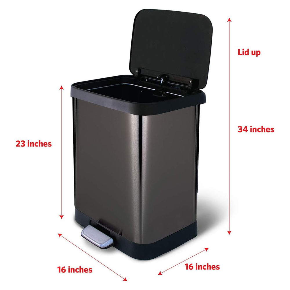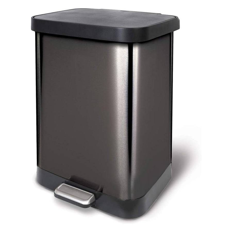 Glad Step Trash Can, Series 2 Soft Close Bin with Odor Protection, 13 Gal, Metal