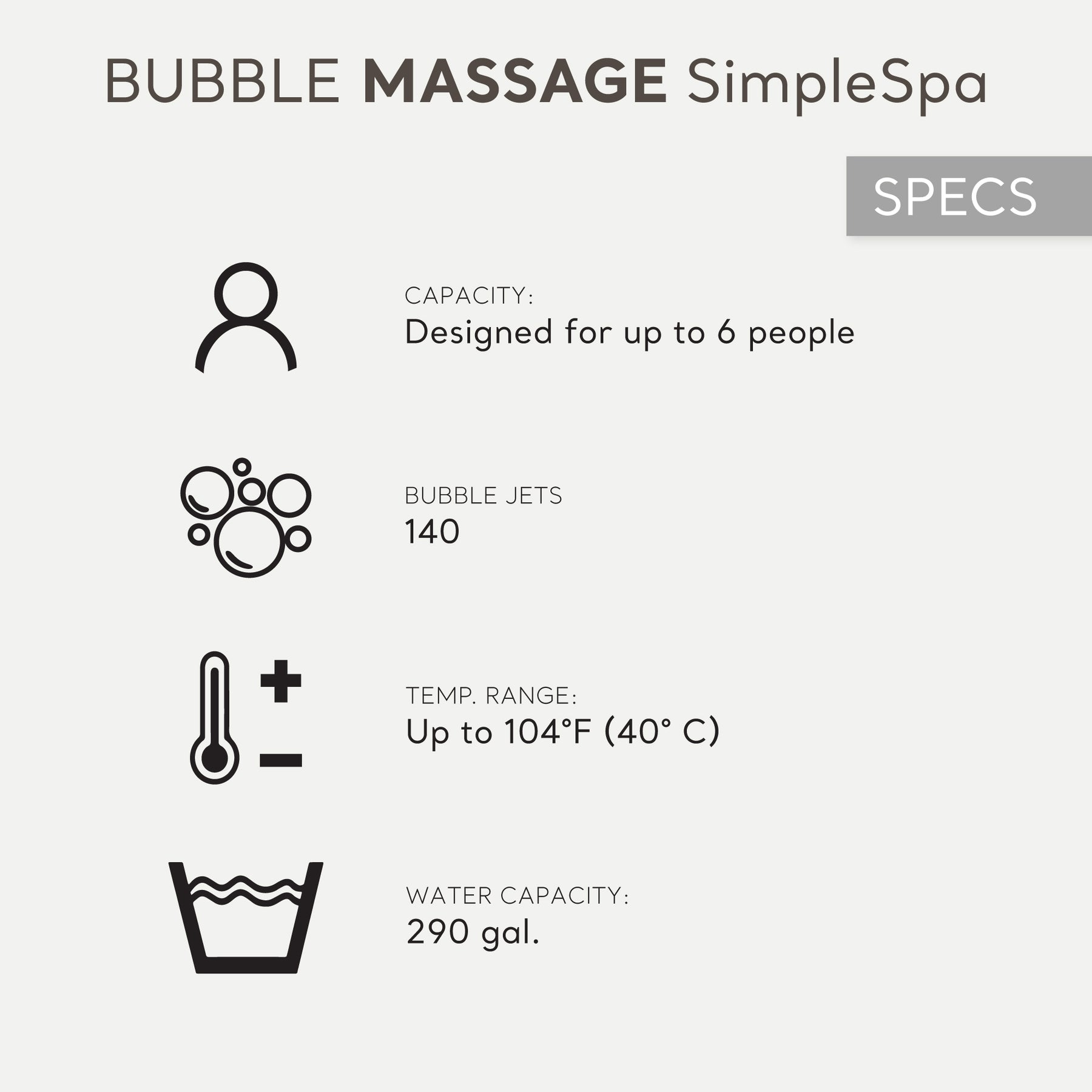 • Relax in comfort with 140 soothing high-powered jets for a refreshing massage and an ultimate spa experience