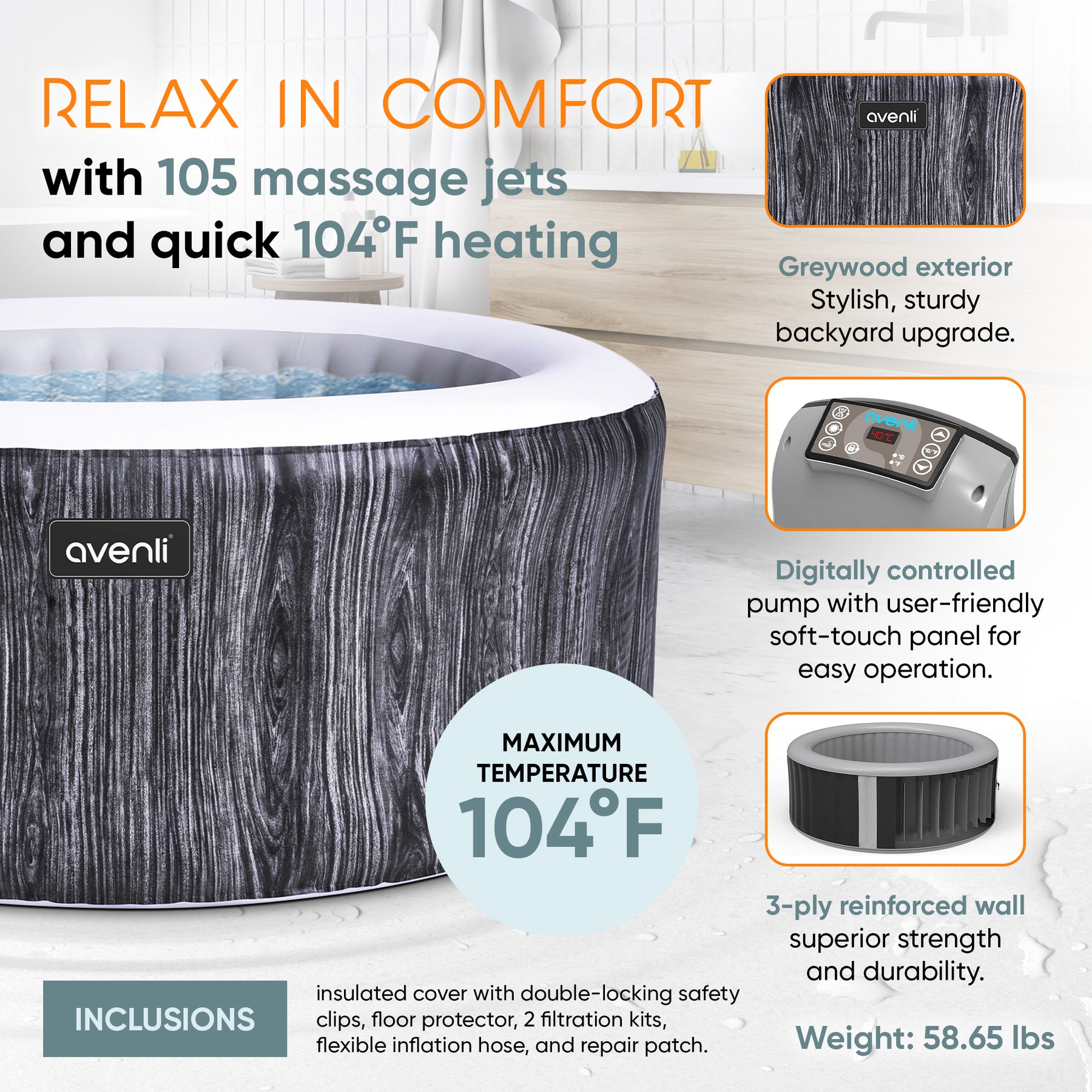 • Comfortable relaxation with 105 soothing massage air jets and a 104-degree Fahrenheit rapid heating system