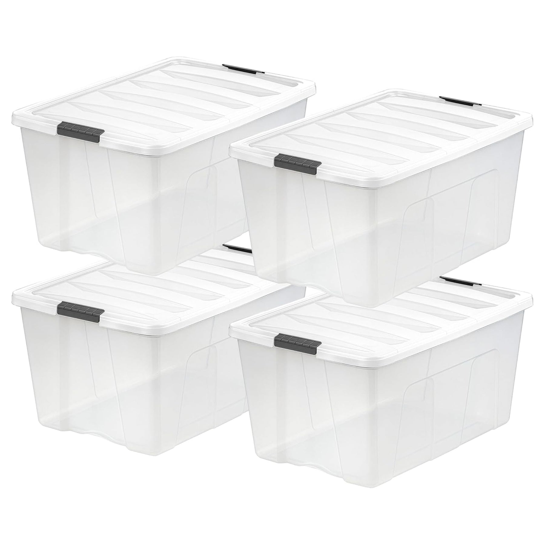 IRIS USA 4 Pack 94 Quart Stackable Plastic Storage Bins with Lids, Clear/White