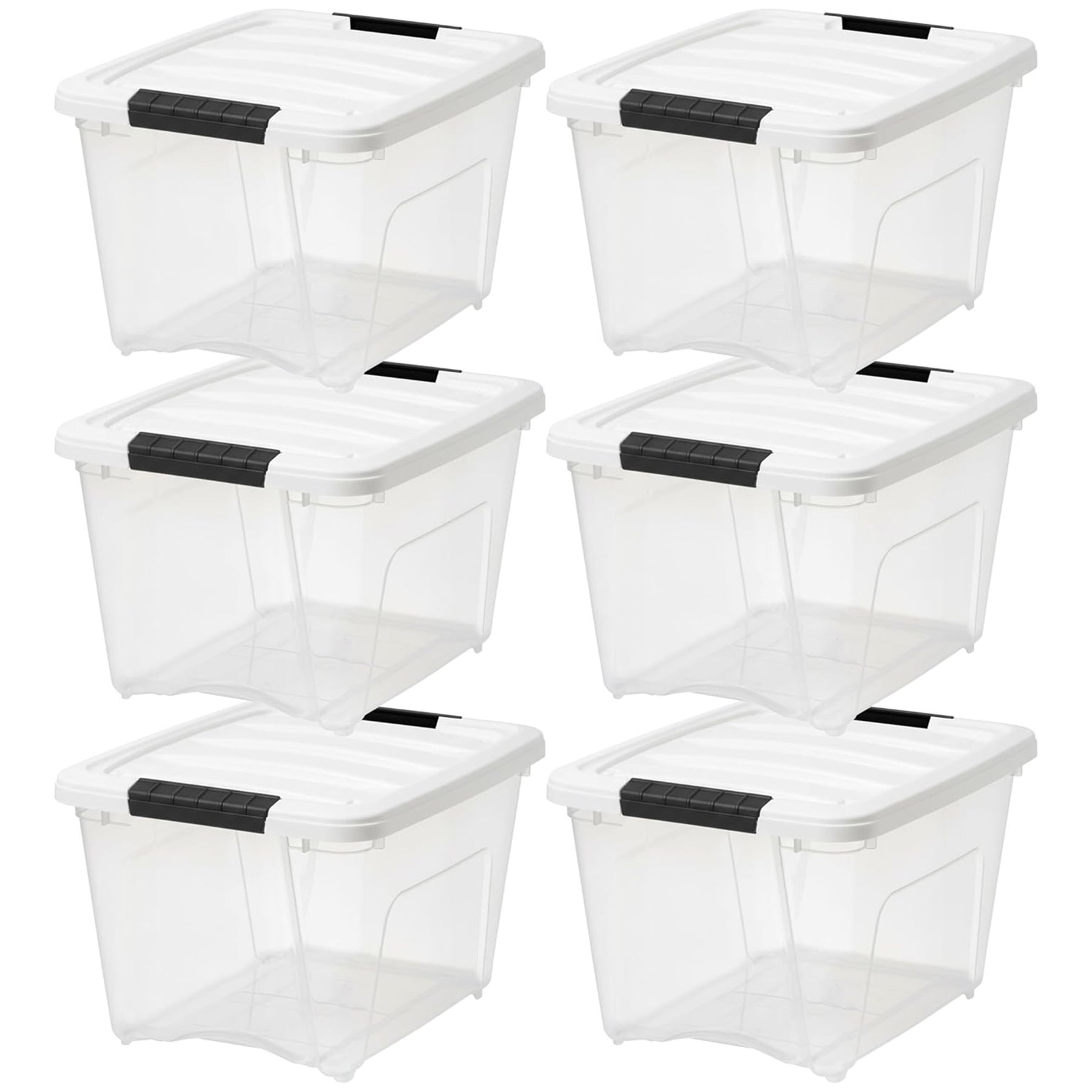 IRIS USA 6 Pack 19 Quart Stackable Plastic Storage Bins with Lids, Clear/White