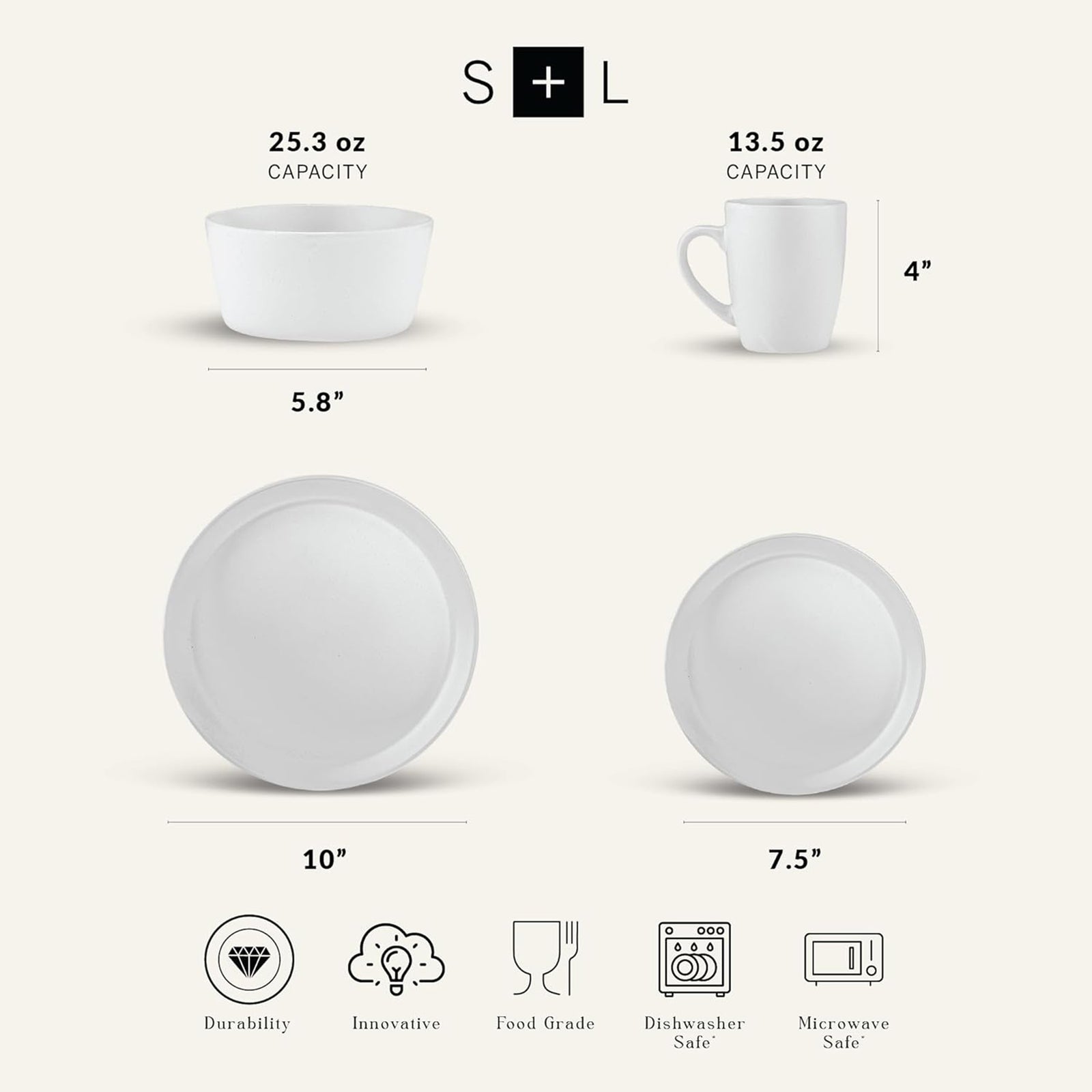 Stone Lain Albie Stoneware 16 Piece Dinnerware Set, Service for 4, White Speckle