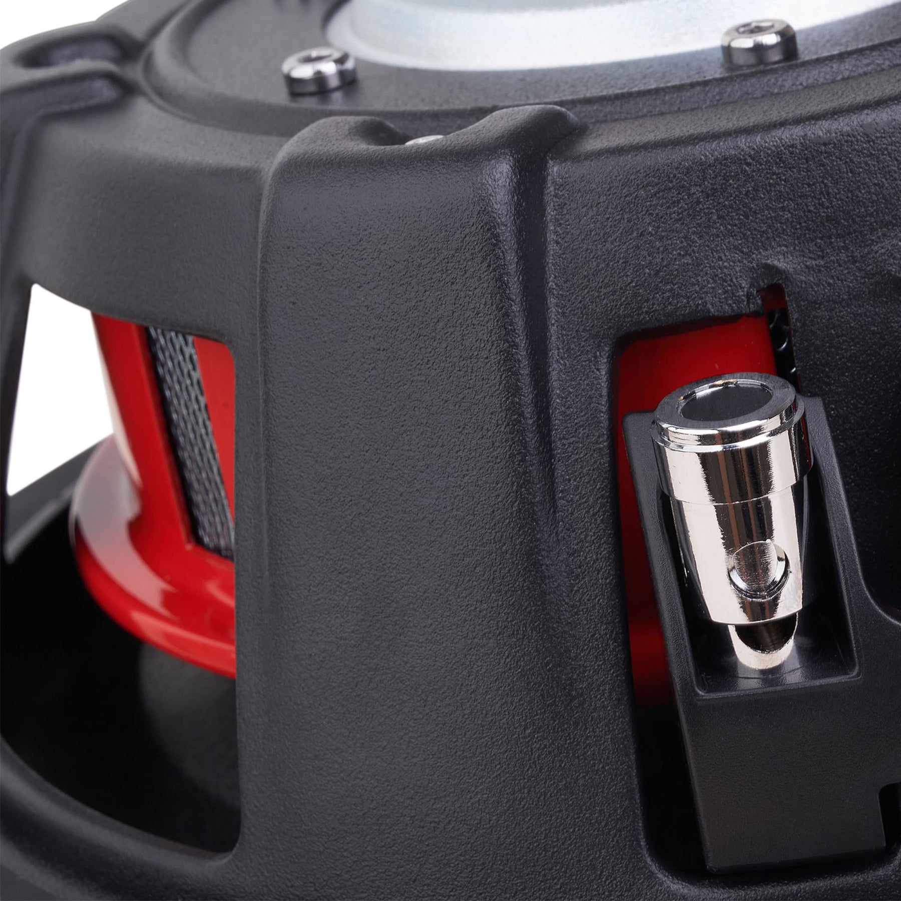 The round shallow mount configuration ensures a perfect fit in tight spaces, while the UV-treated powder-coated stamped steel basket for a solid base, and a lightweight woven fiber cone with dust cap for optimal response and strength. Our high-temperature voice coil, crafted from vented aluminum, guarantees thermal stability and efficient heat dissipation, ensuring your subwoofer performs at its peak under any conditions. The lightweight woven fiber cone and dust cap are meticulously designed for fast response and durability, ensuring every beat is crisp and clear.