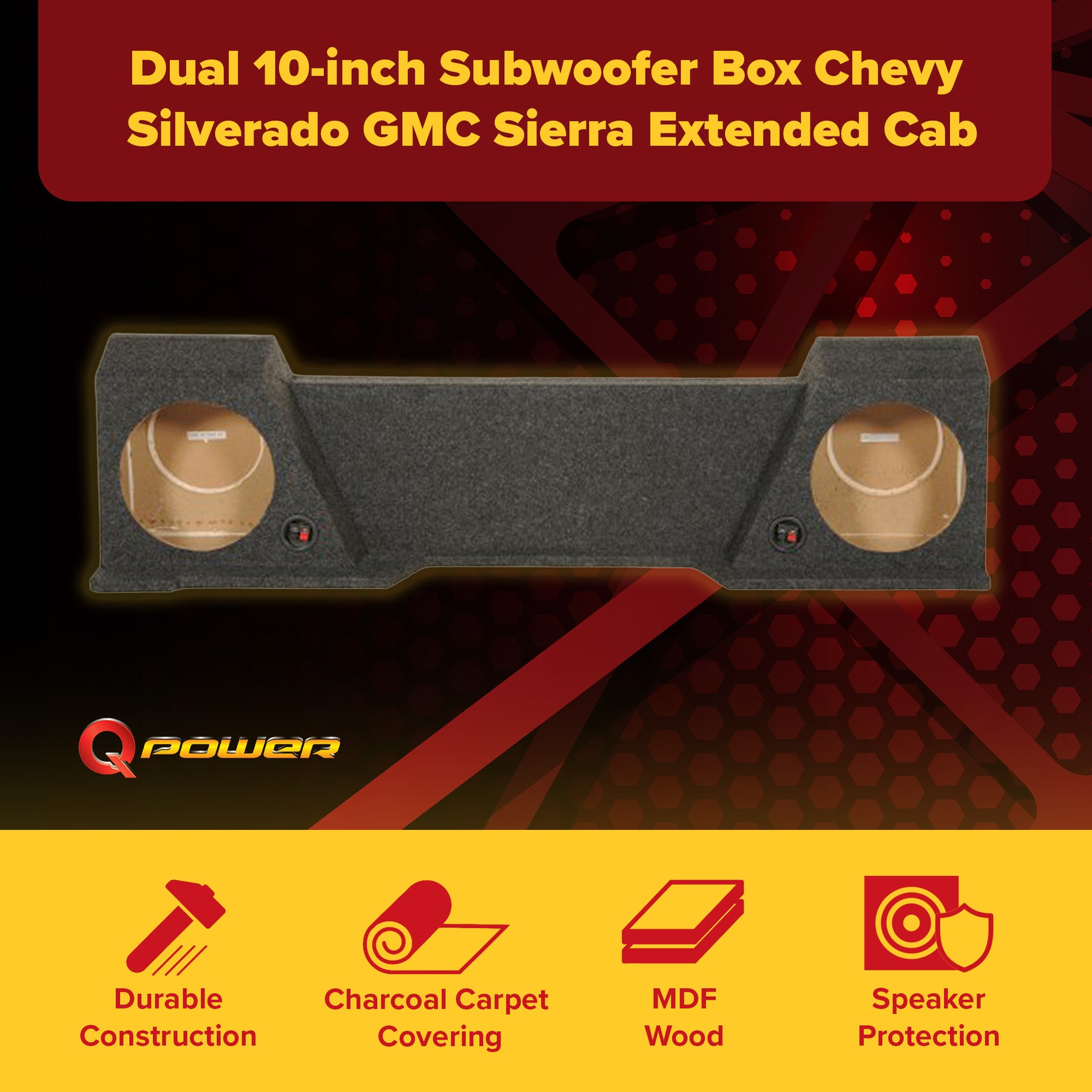 Q Power Dual 10 Inch Subwoofer Box for Chevy Silverado GMC Sierra Extended Cab
