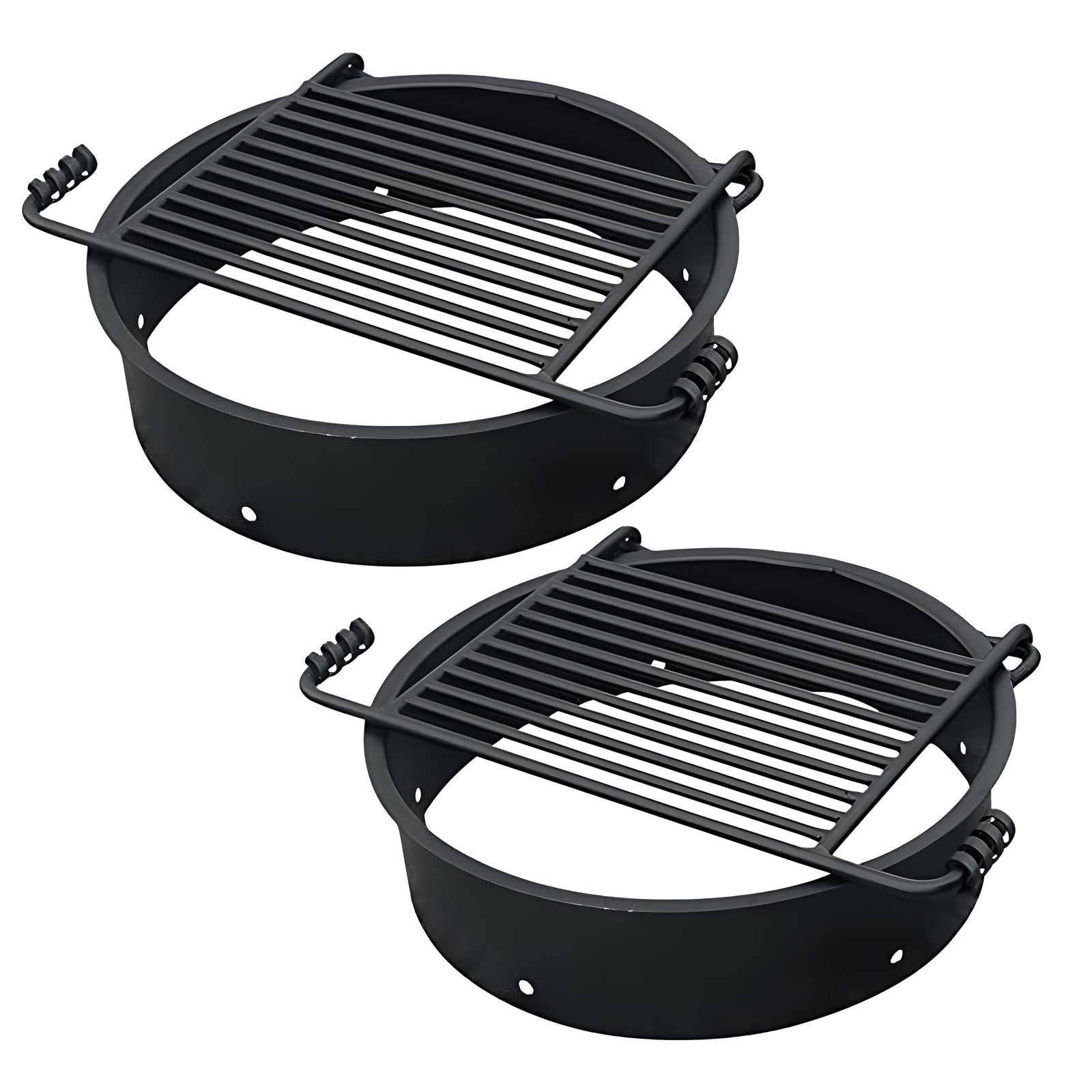 Pilot Rock 2 Pack 24” Steel Ground Fire Pit Rings & Metal Cooking Grates, Black