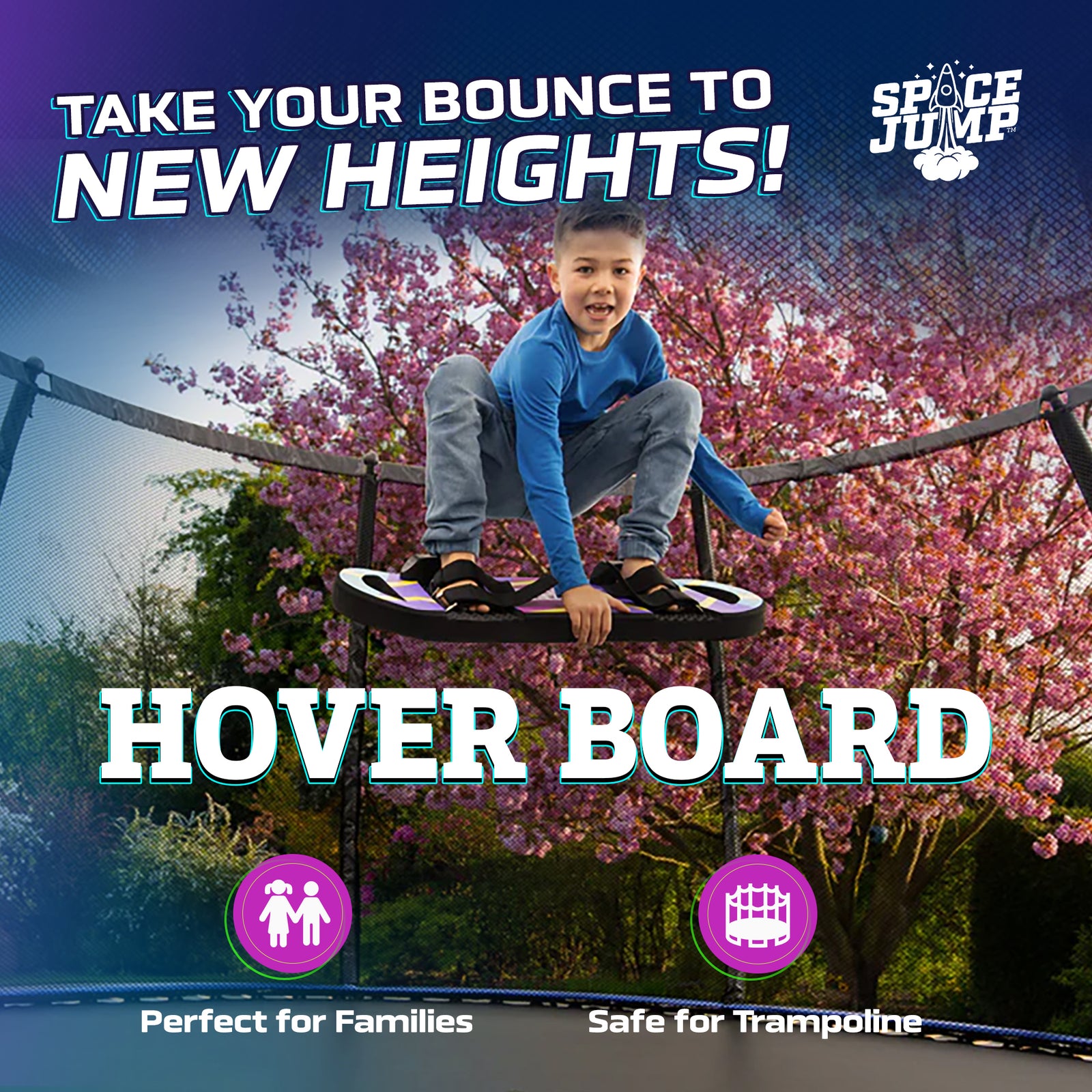 SpaceJump HoverBoard Foam Trampoline Attachment Trick Board, Straps, Multicolor