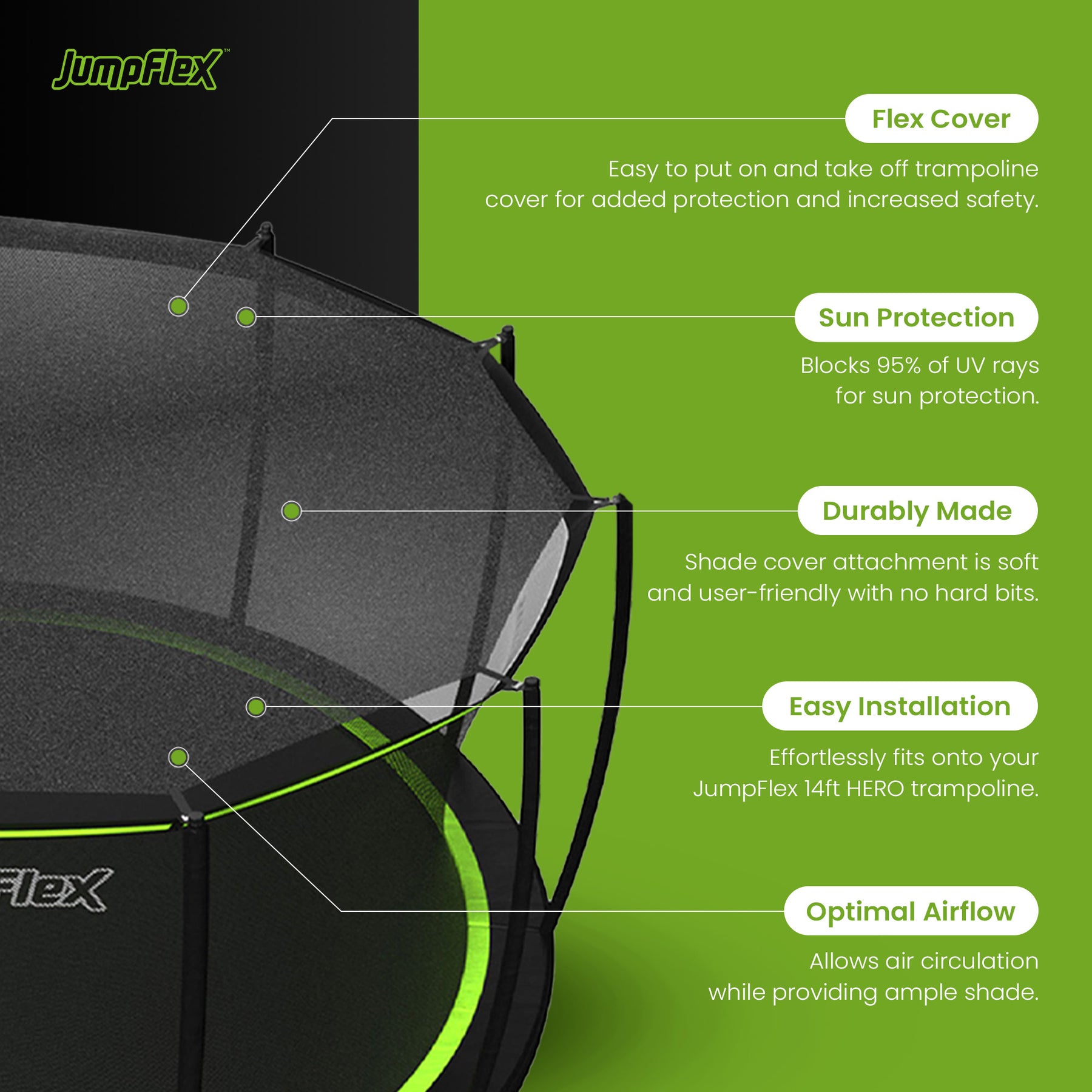- Complete Trampoline Set with Shade – Includes the JumpFlex HERO Trampoline and SMARTSHADE Cover for safe, shaded play all day.