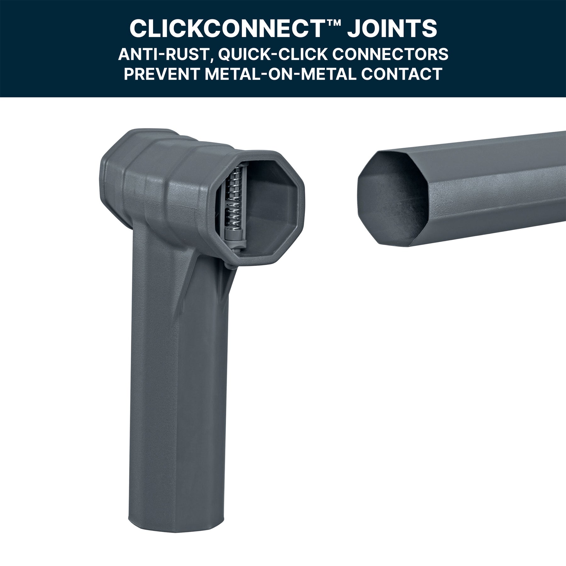 • Galvanized steel frame construction resists corrosion and is held together with ClickConnect joints, featuring quick-click connectors