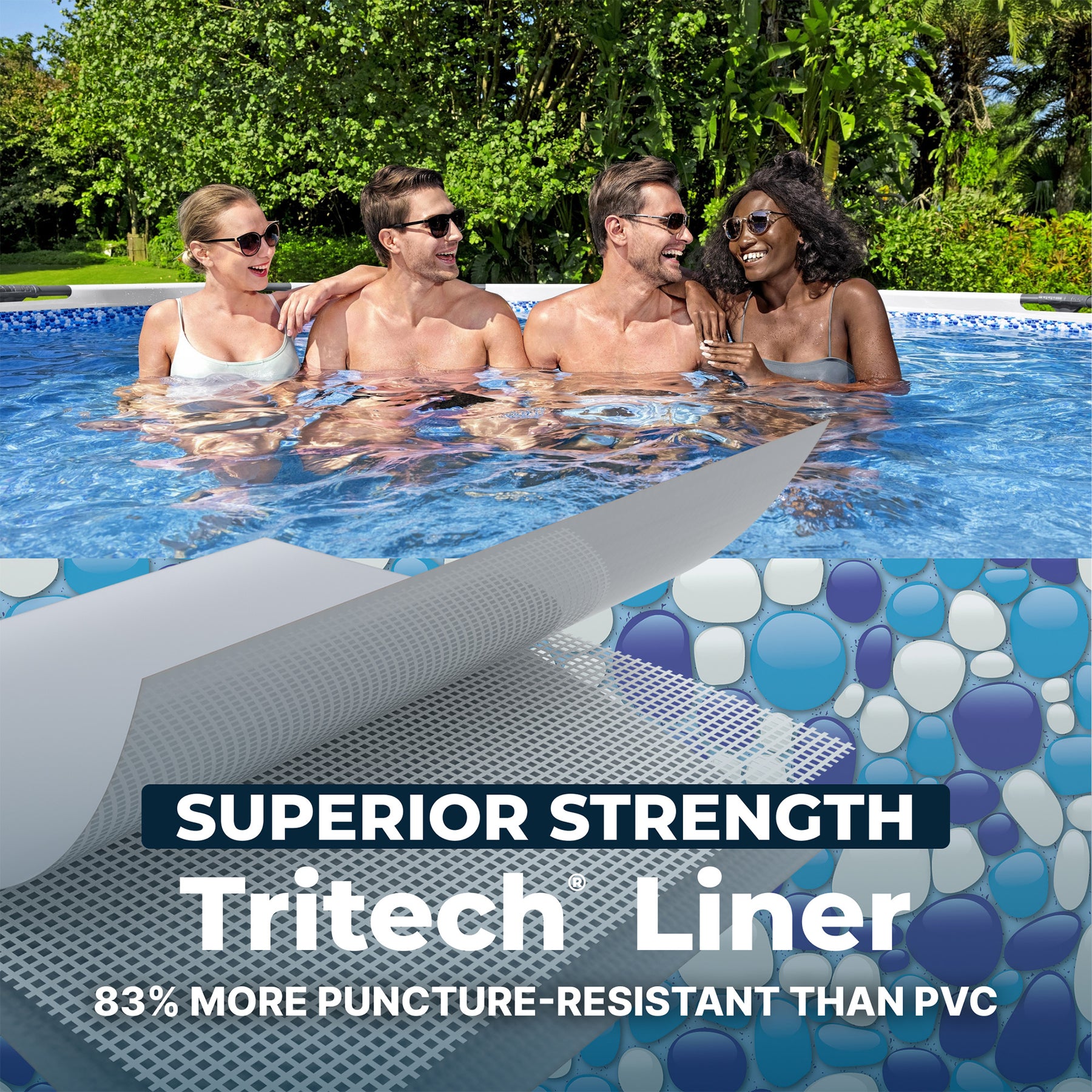 - Sturdy Tritech liner is a 3-layer material constructed to offer added strength and resistance to punctures over standard PVC pool liners