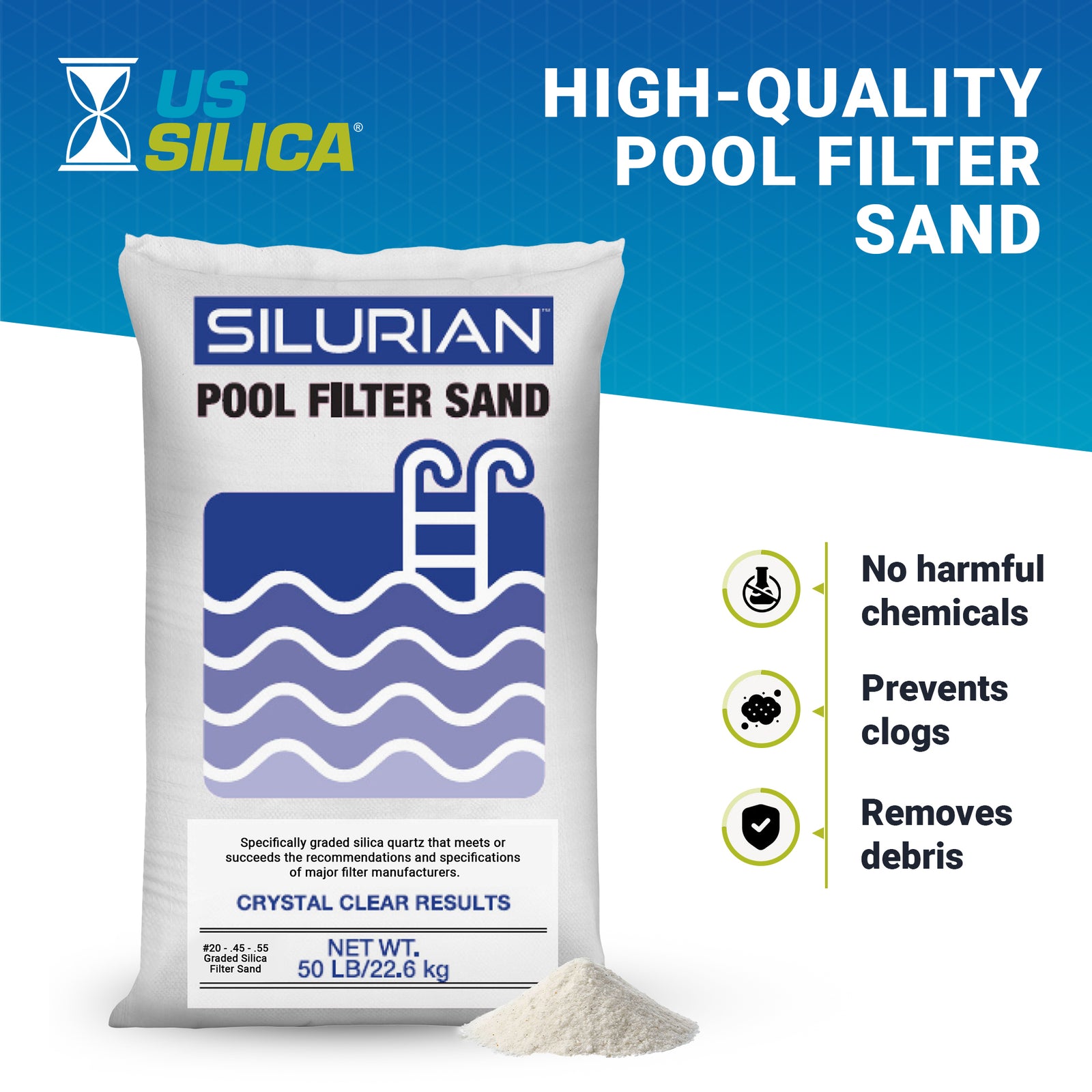 U.S. Silica 10 Pack SILURIAN 20 Grade Pool Filter Sand for Optimal Filtration
