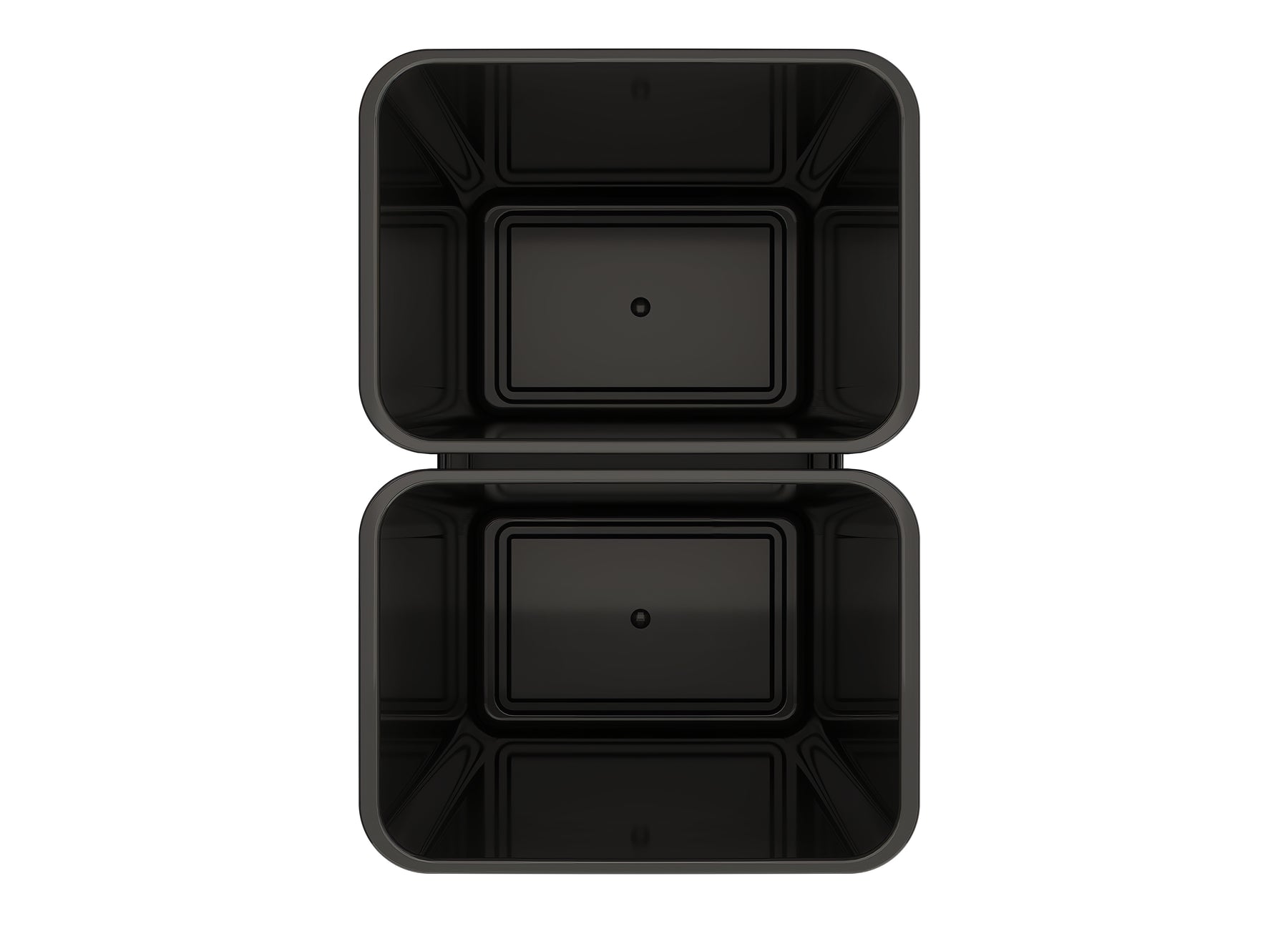 - Includes (2) 50 qt. waste containers, (1) metal frame, (1) pair of slides, mounting hardware, and door mount brackets