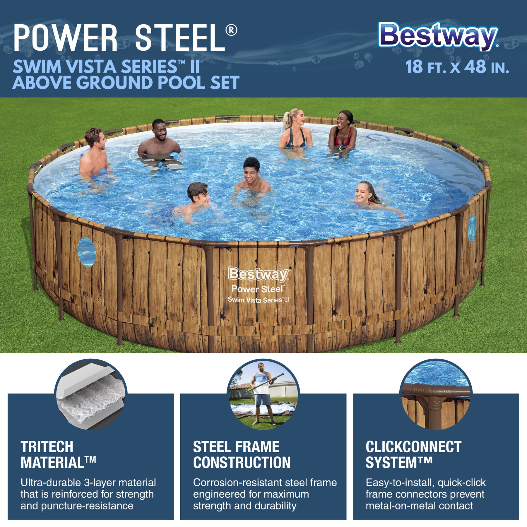 Bestway Power Steel Swim Vista 18' x 48" Round Above Ground Swimming Pool Set