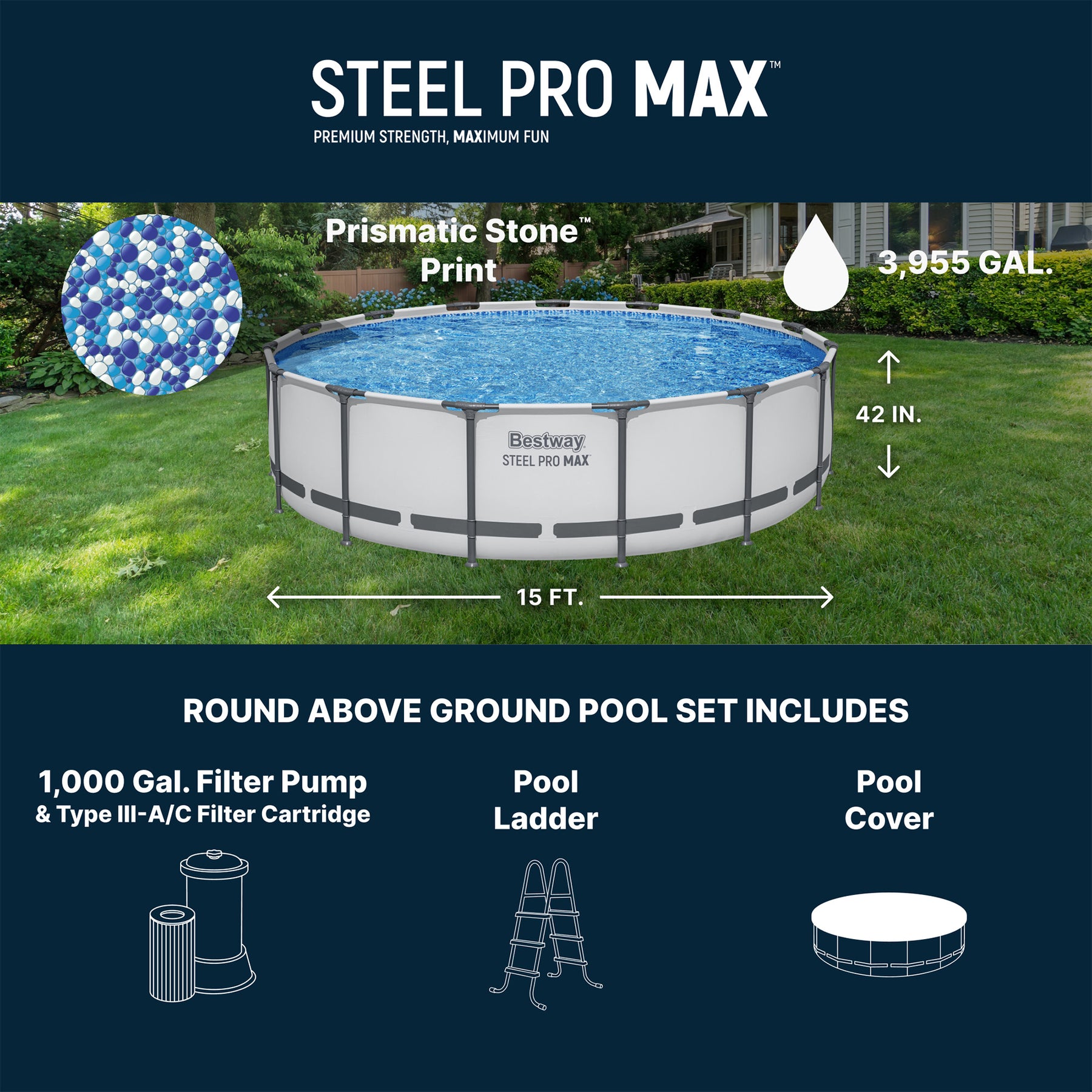 - Bestway Steel Pro MAX 15 ft x 42 in above ground pool set provides family backyard summer fun and relaxation for all ages
