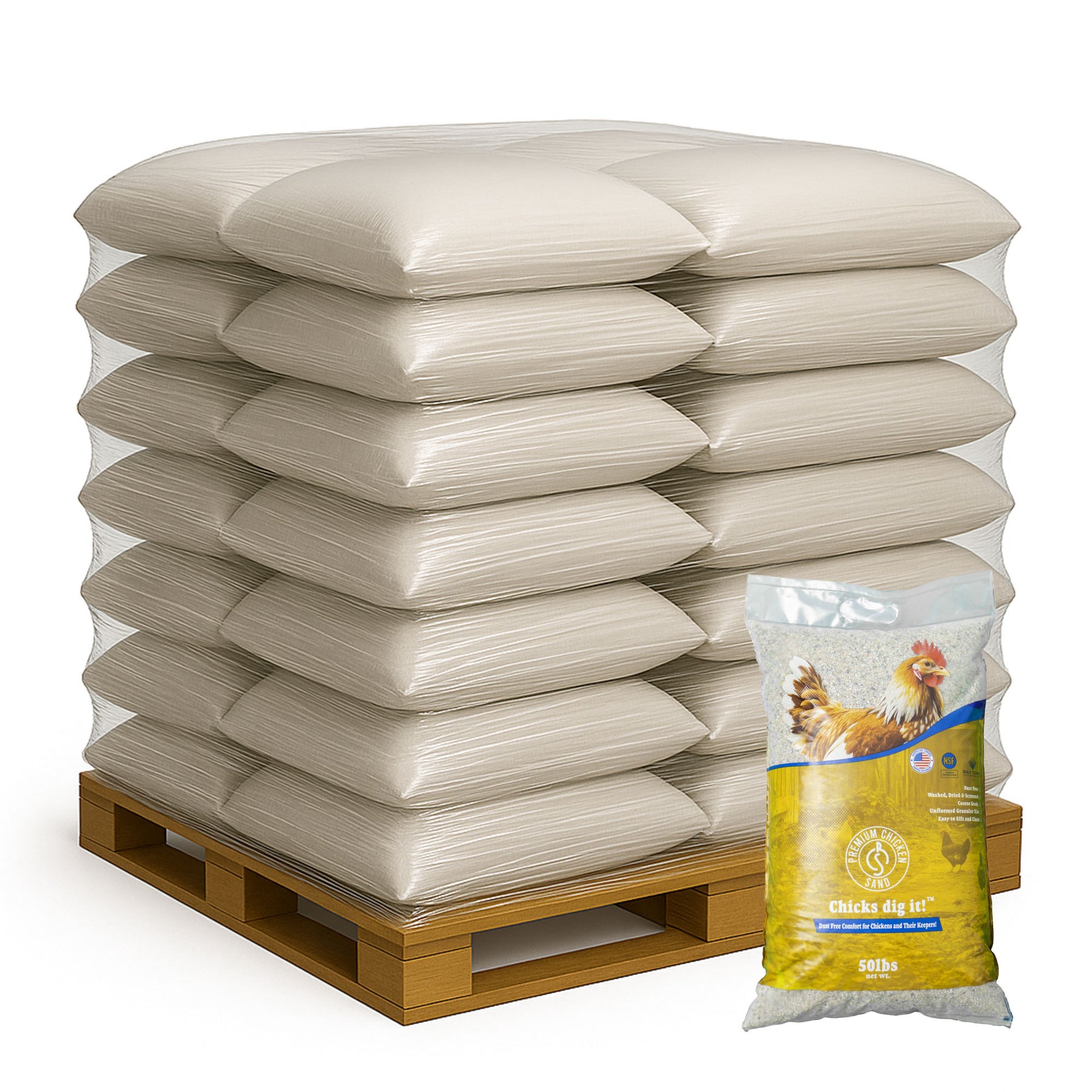 Premium Chicken Sand, Odor Eliminating Bedding for Coops, 50 Lb Bag, 56 Pack