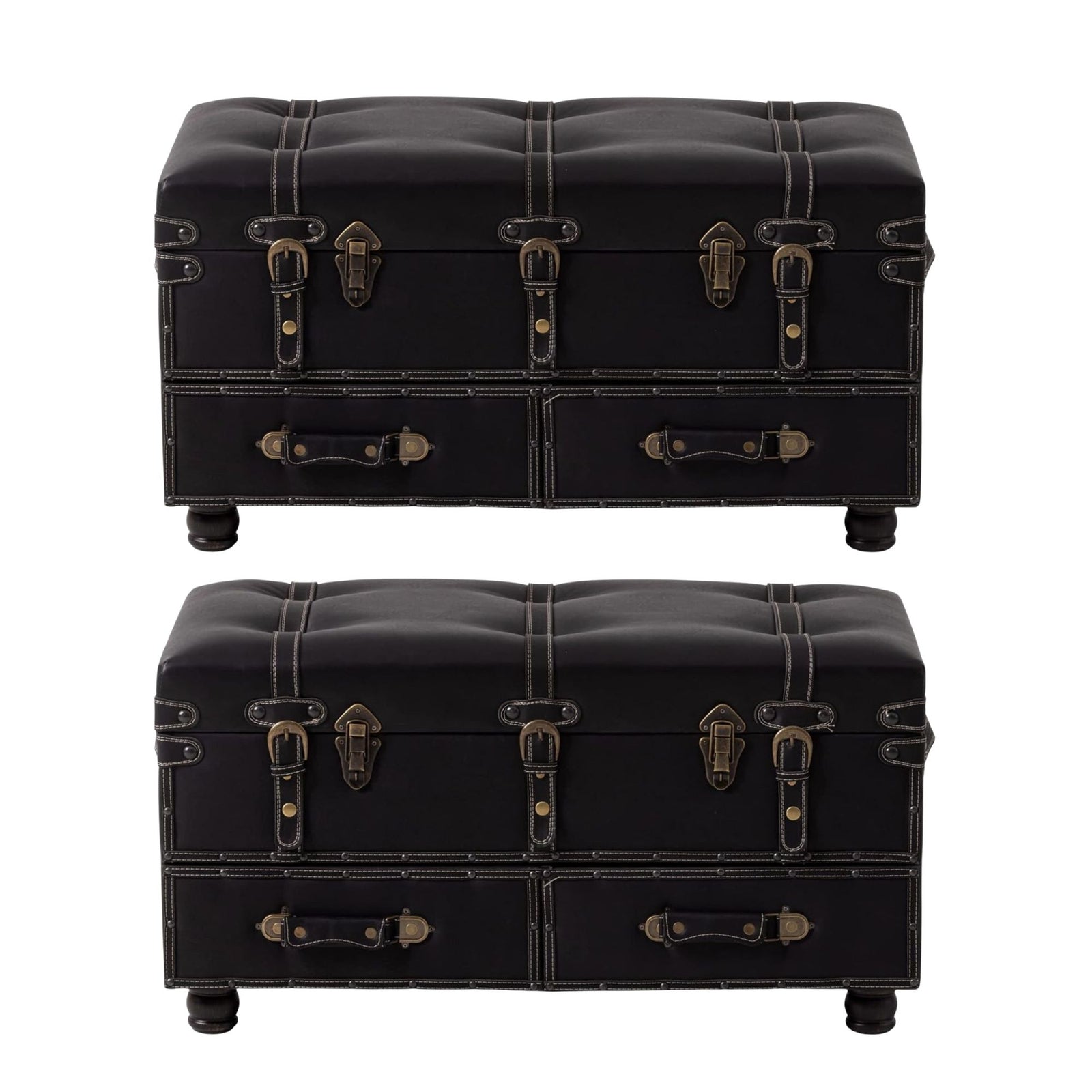 COZAYH Vintage Storage Bench, Upholstered Wooden Ottoman Chest, Black, Set of 2