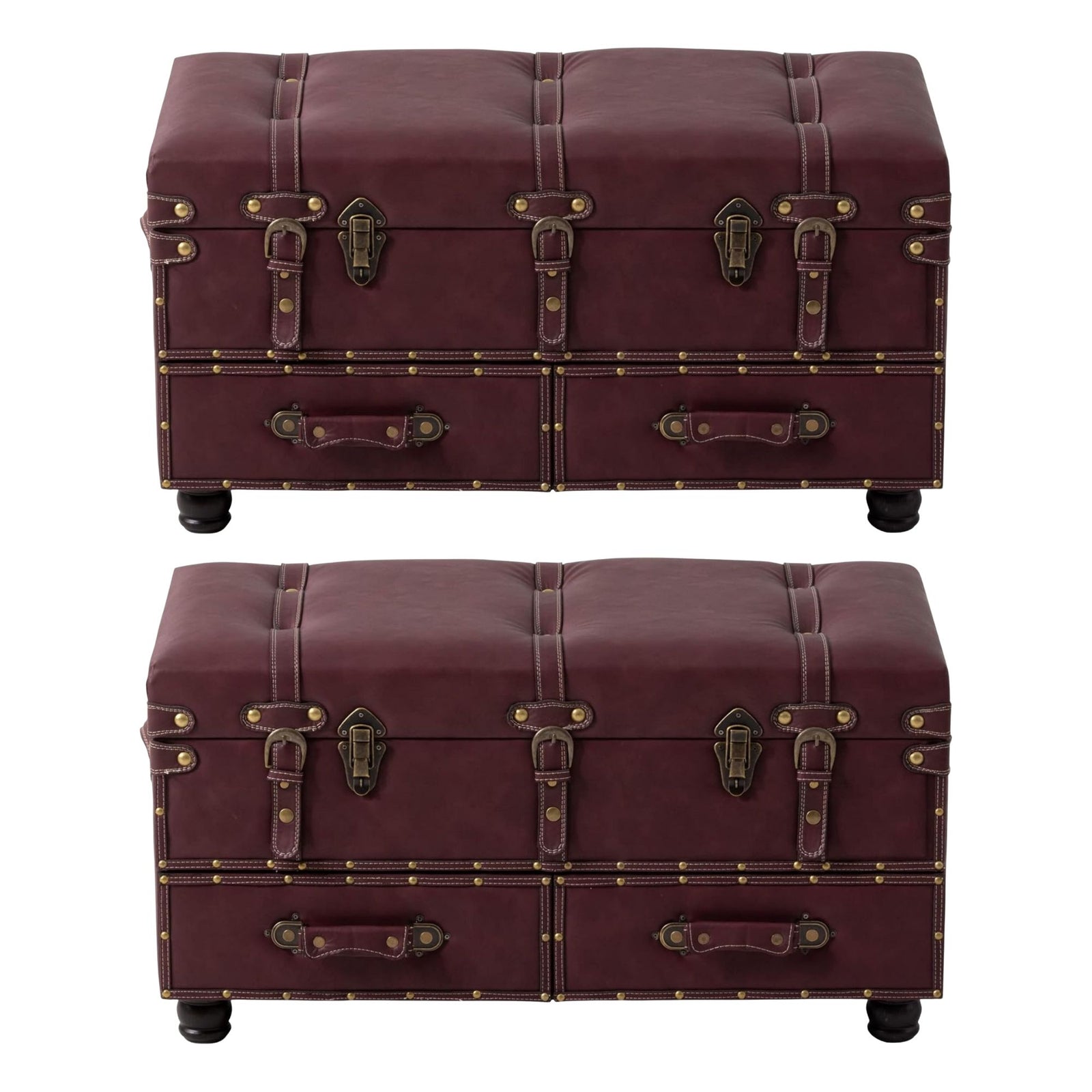 COZAYH Vintage Storage Bench Upholstered Wooden Ottoman Chest, Magenta, Set of 2