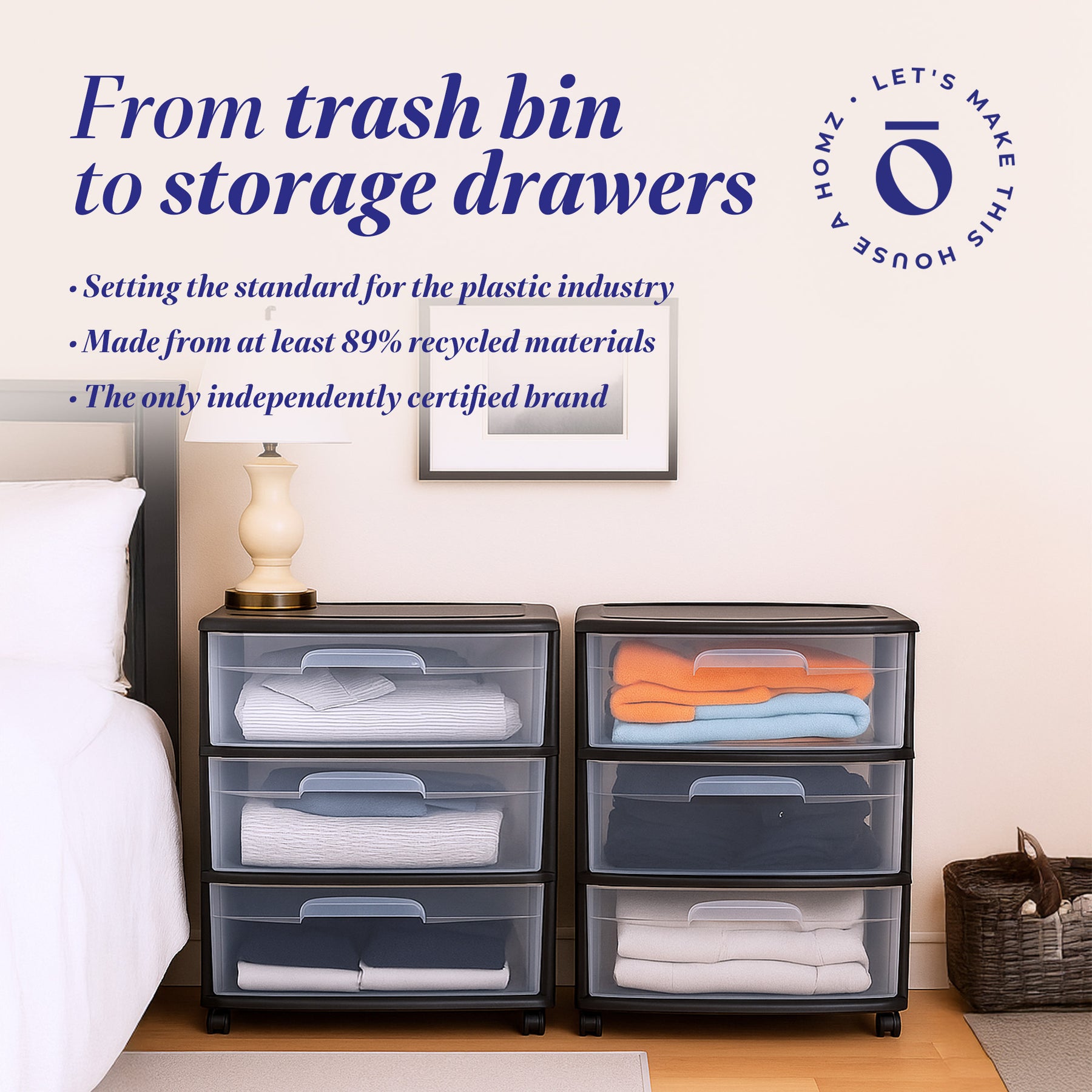 • See-through tinted pull-out drawers allow you to see contents inside