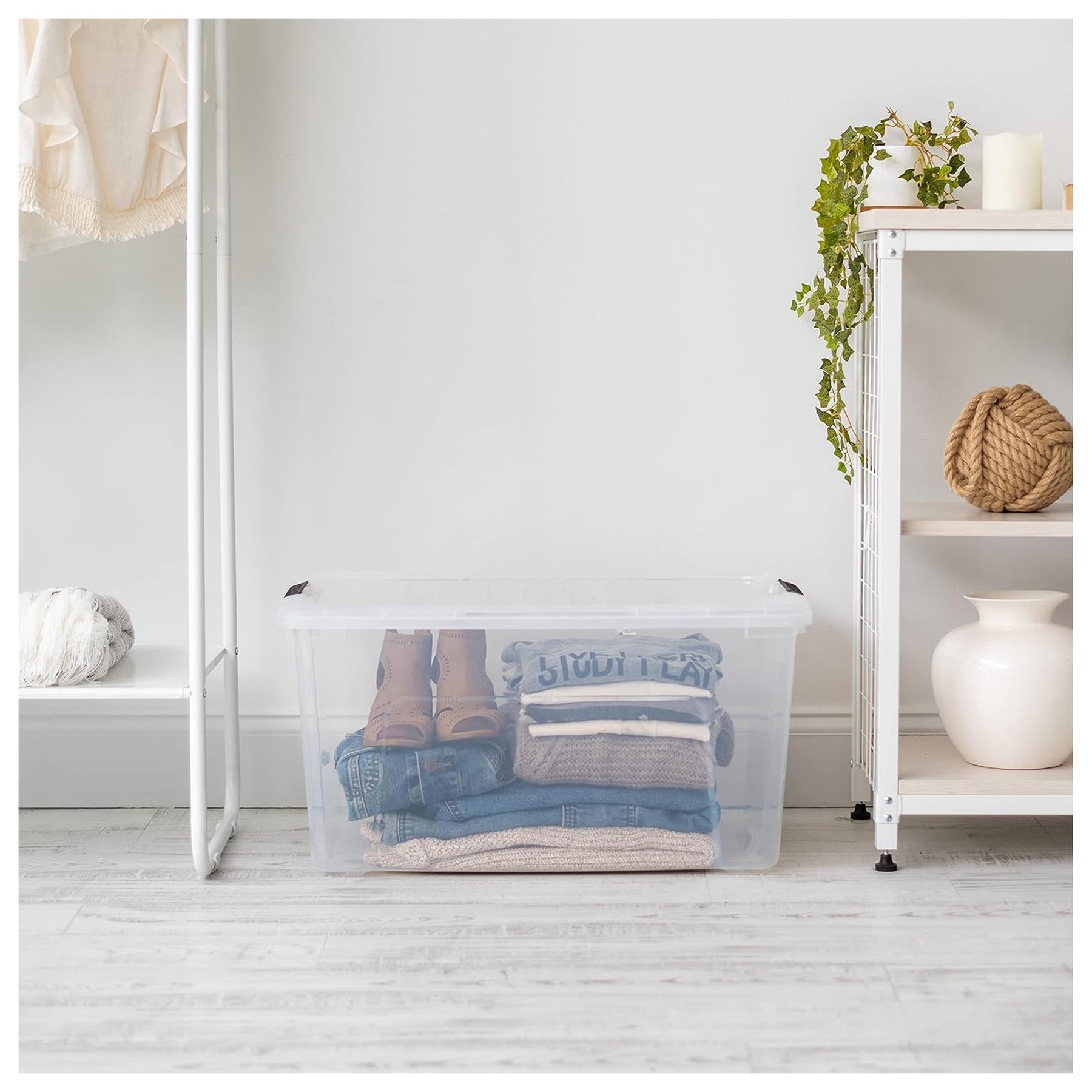 The IRIS USA 72 Qt Storage Bins with Lids offer a durable, versatile, and space-efficient way to organize your home, office, or garage. Designed as a practical two-pack, these large-capacity bins provide a dependable solution for storing seasonal items, clothing, shoes, linens, toys, decorations, and household essentials. Their clear see-through design allows you to identify contents instantly without opening the lid, making everyday organization easier and more convenient.