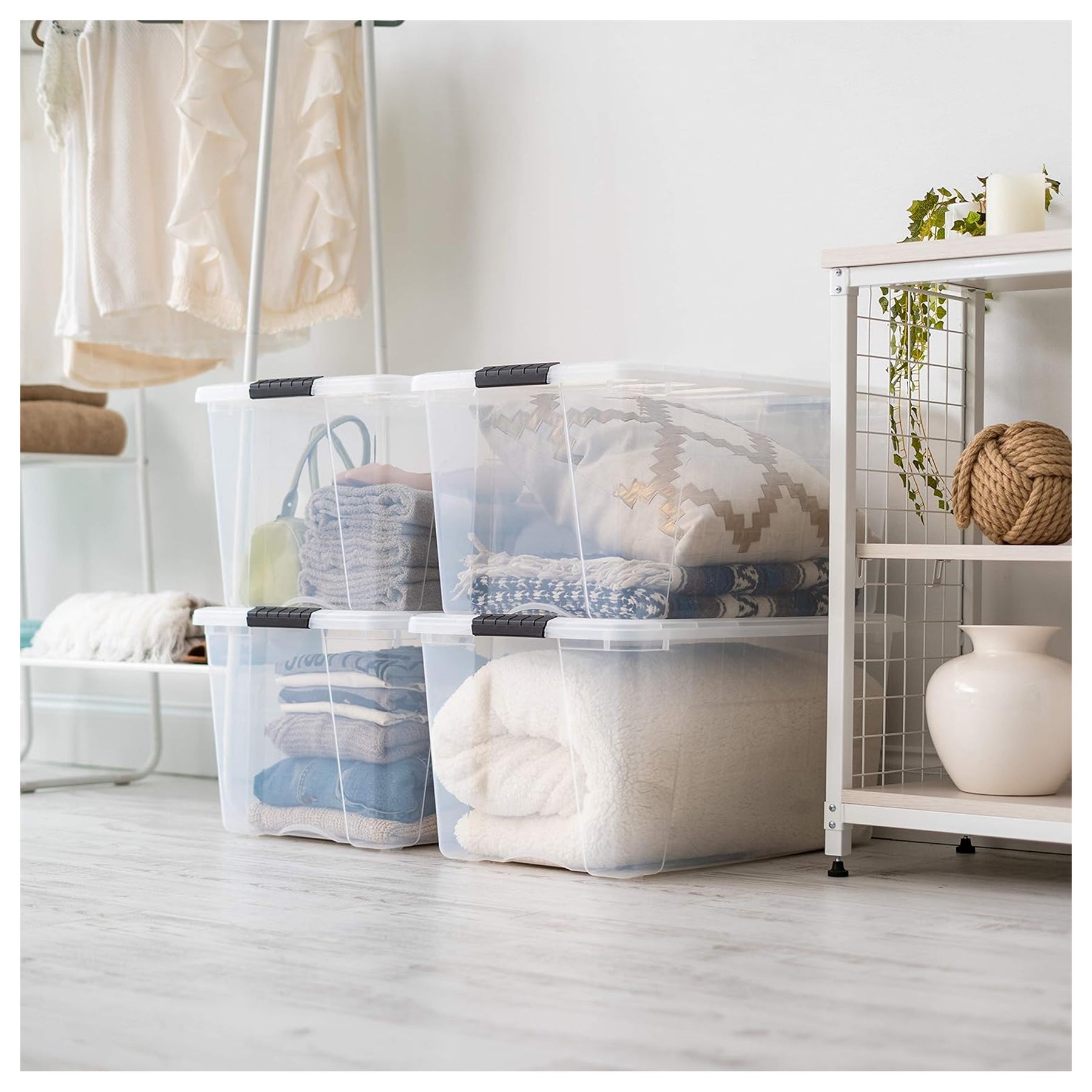 IRIS USA 72 Qt Storage Bins with Lids, Stackable Plastic Containers, Clear, 2 Pk