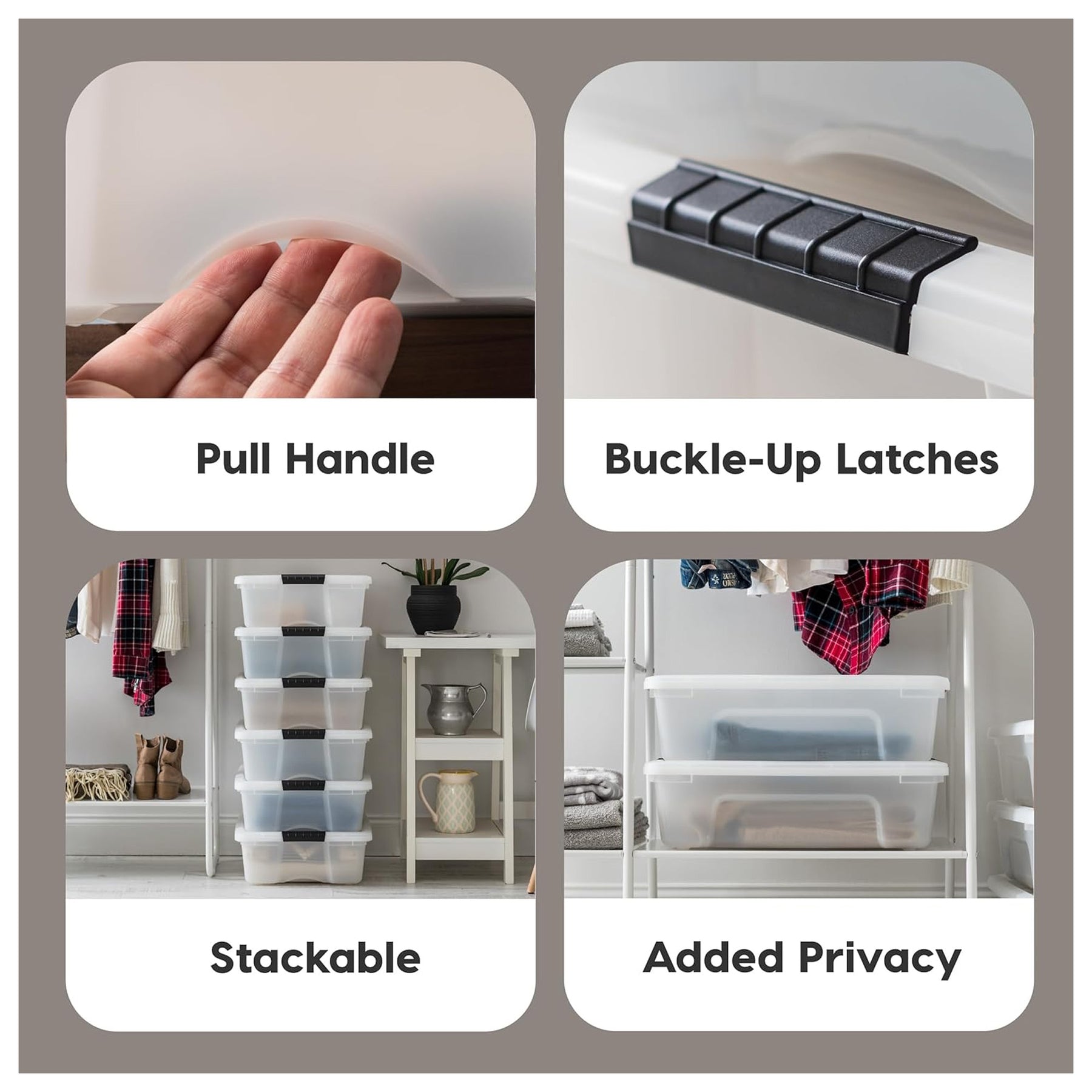 IRIS USA 27 Qt Plastic Storage Box with Lid, Stackable Design, Pearl, 6 Pack