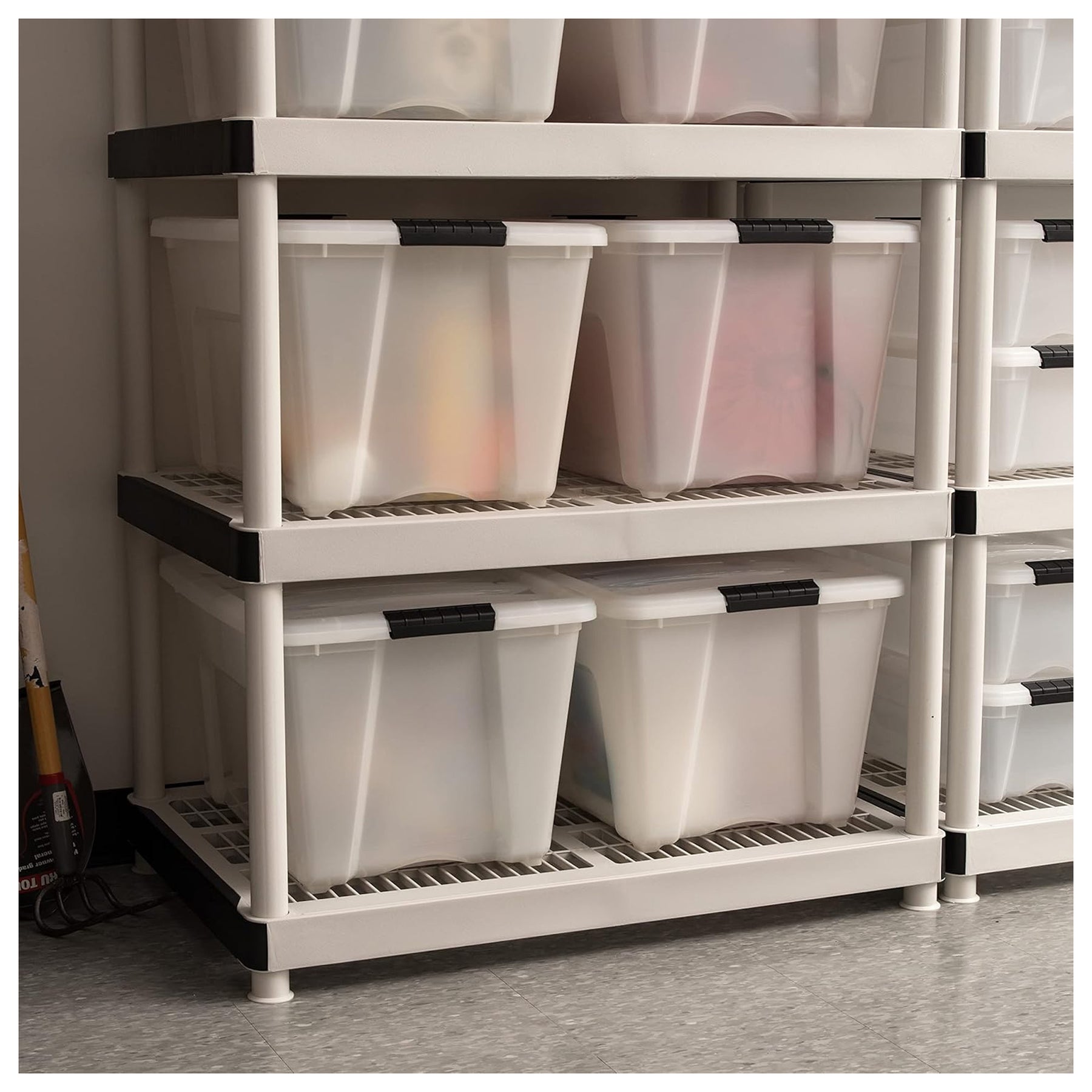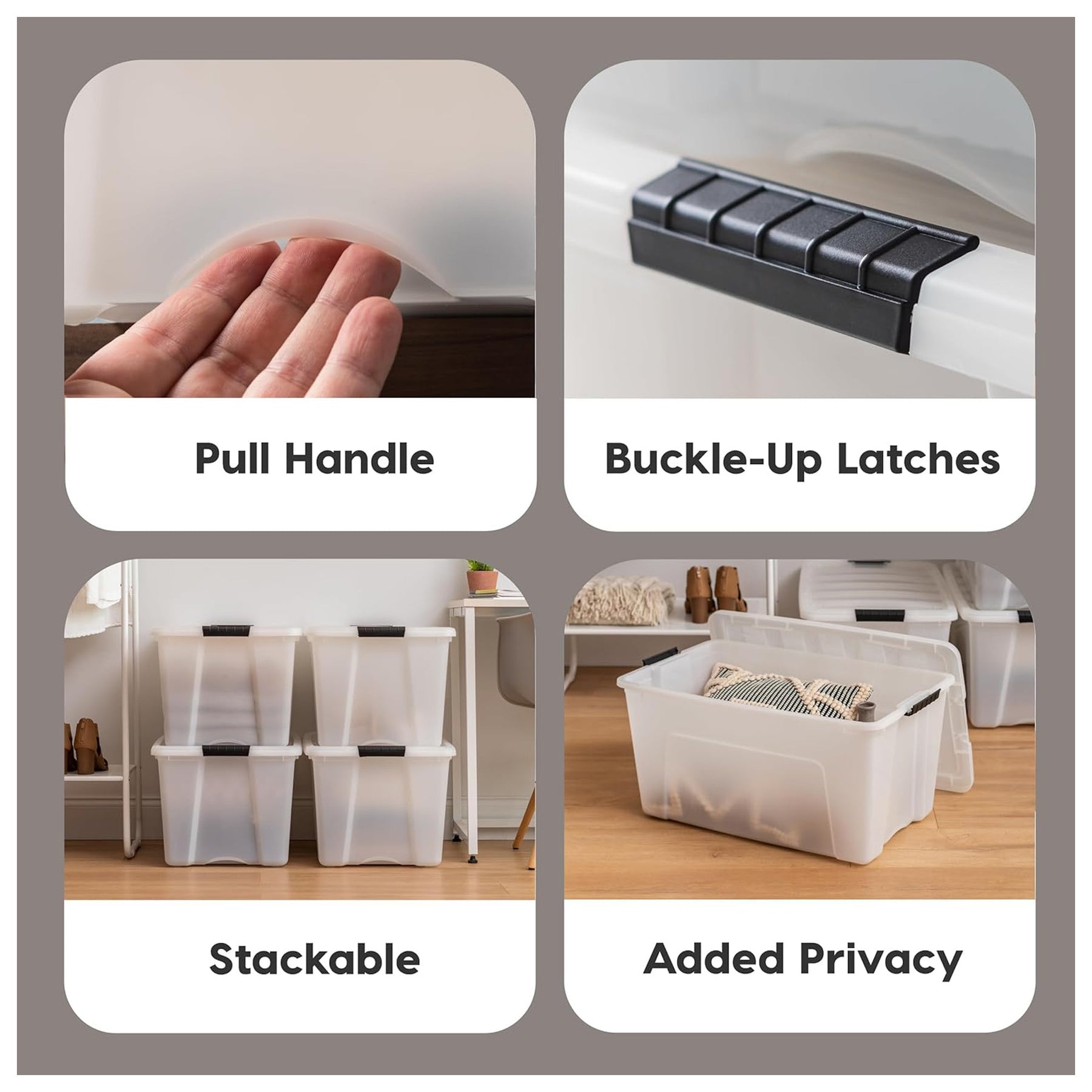 IRIS USA 54 Qt Plastic Storage Box with Lid, Stackable Design, Pearl, 4 Pack