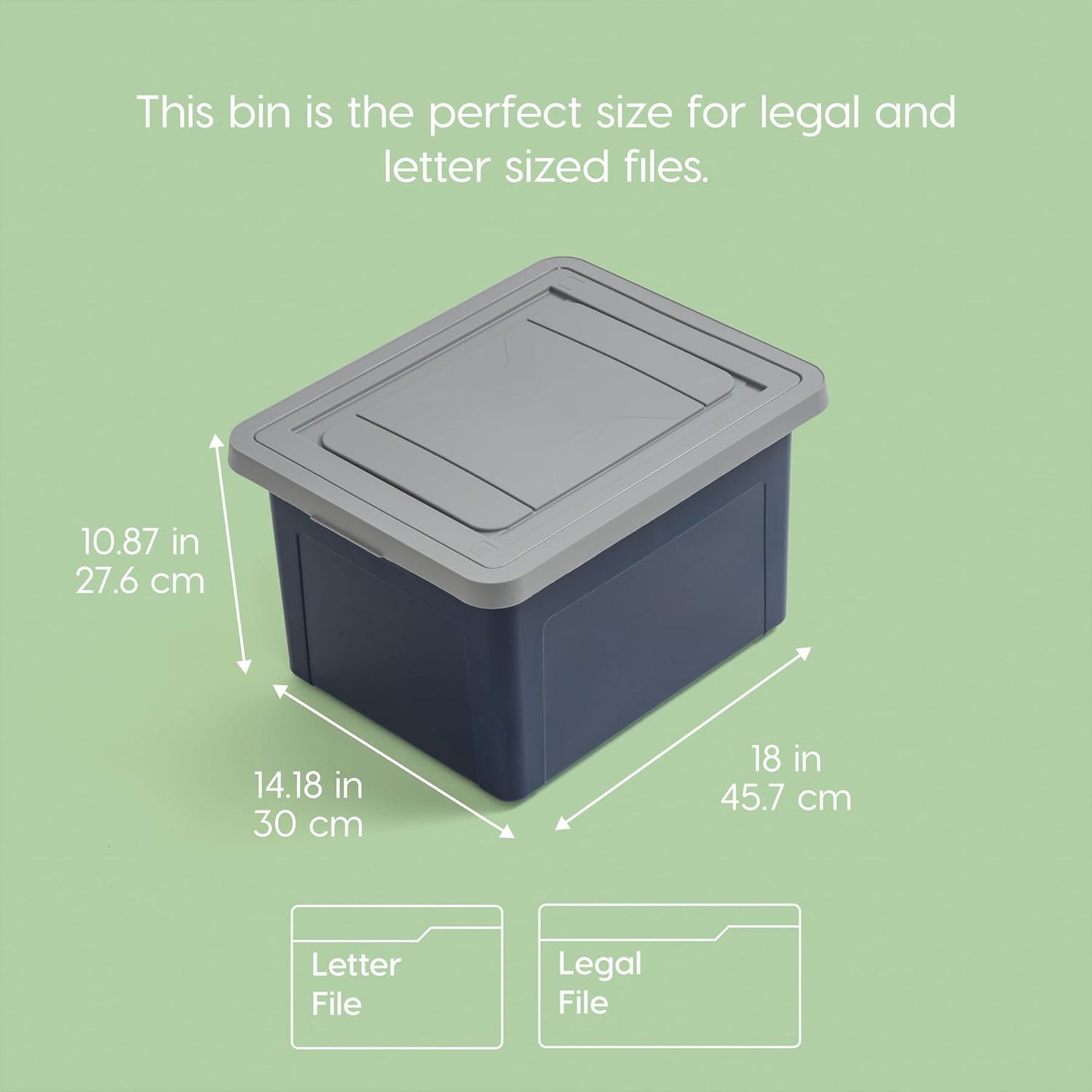 The non-see-through navy body offers complete privacy, making this file box a dependable choice for bankers, attorneys, financial professionals, and anyone managing sensitive information. The secure latching lid snaps firmly into place to protect contents during transport or long-term storage, while the grooved lid and reinforced body allow multiple totes to stack safely without shifting. Whether you're storing documents in an office, closet, garage, or vehicle, the stable design helps save space while keeping files easy to retrieve.