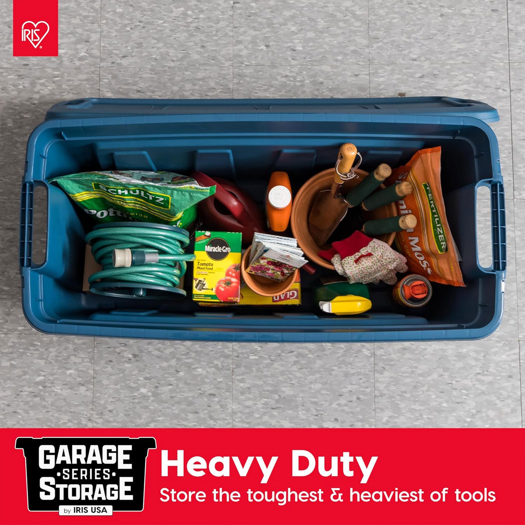 IRIS USA Storage Totes, 31 Gal Stackable Bins with Handles & Lids, 4 Pack, Navy