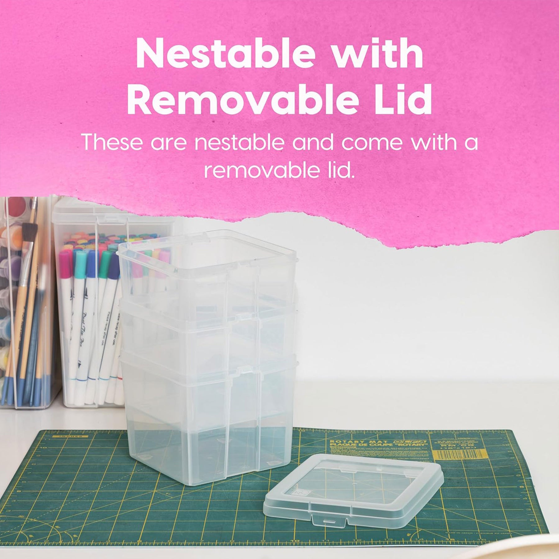 • Stack multiple bins to create a personalized storage system that maximizes space in kitchens, bathrooms, or craft rooms